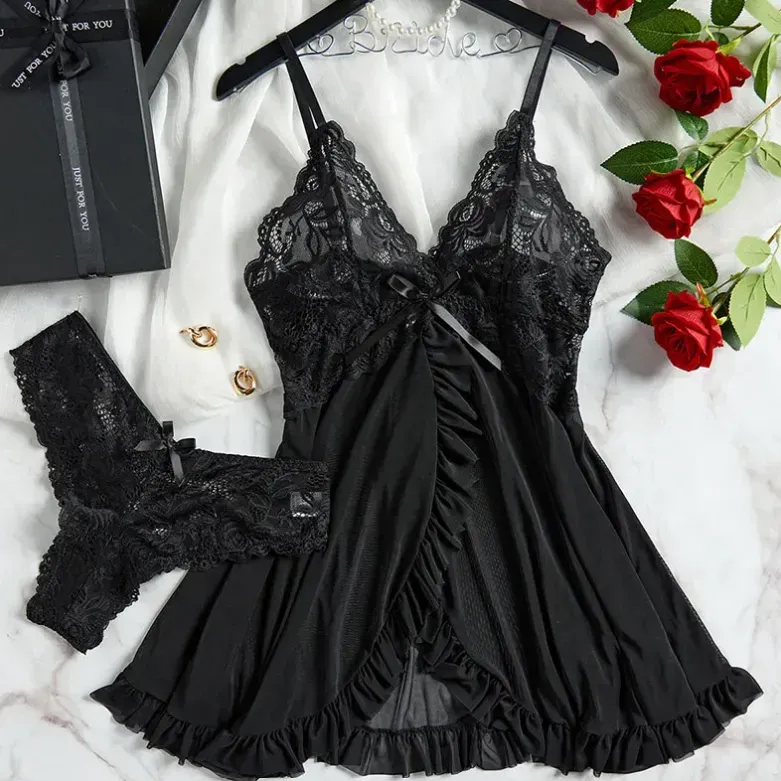 BABYDOLL CONJUNTO PANTALETA DE ENCAJE VARIEDADES