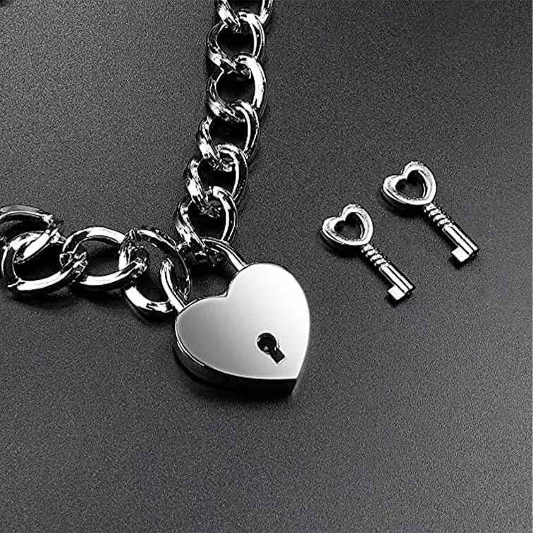 El collar cadena corazón RYWC-250-A es perfecto para complementar tus relaciones amo/a y sumiso/a. Con un candado funcional y de alta calidad, este collar de acero inoxidable plateado es resistente al agua y viene con una llave. Talla única de 40 cm de largo. ¡Haz que tus momentos sean aún más espec...