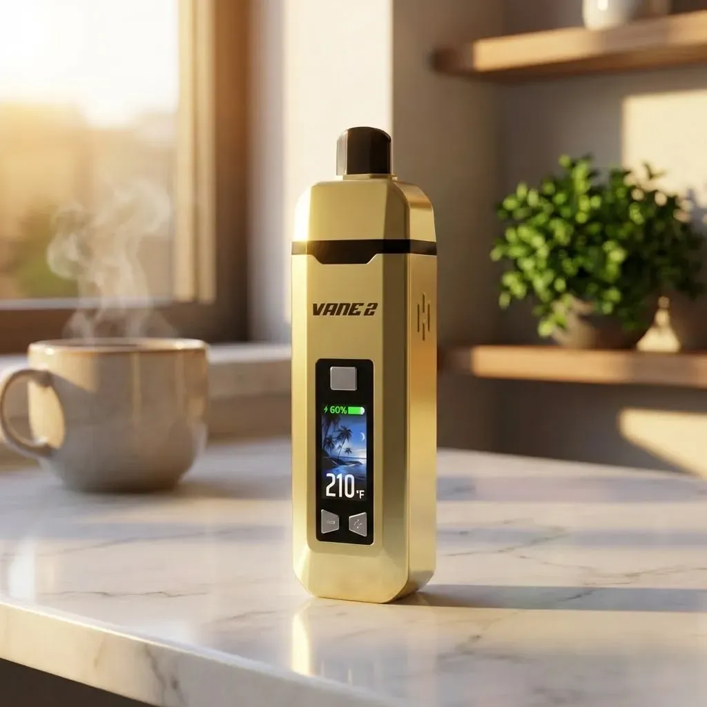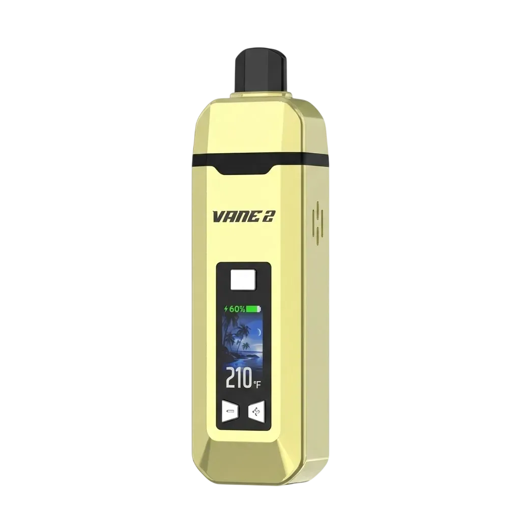 El vaporizador de hierba seca Vane Yellow es un equipo portátil diseñado para vaporizar material vegetal con control de temperatura y lectura en pantalla. Su formato compacto y la pantalla LCD a color permiten manejar la sesión con información visible en tiempo real.
