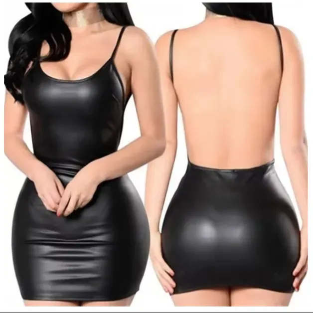 VESTIDO SEXY DE PIEL SINTÉTICA CON ESPALDA DESCUBIERTA