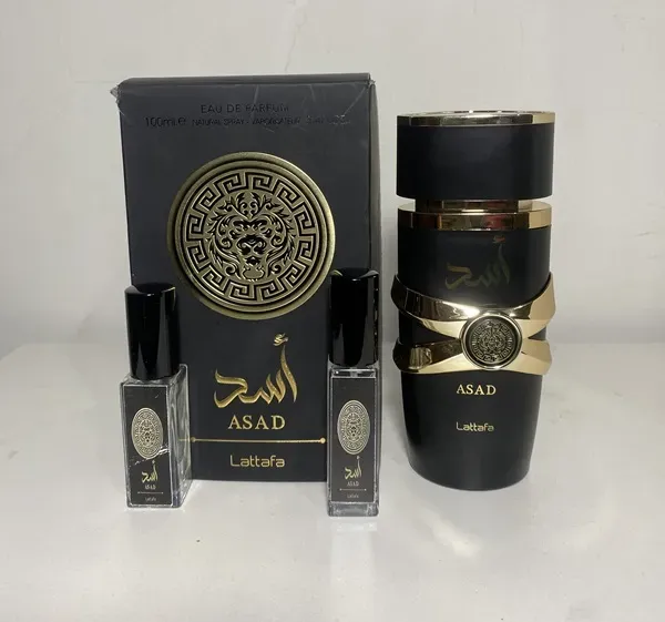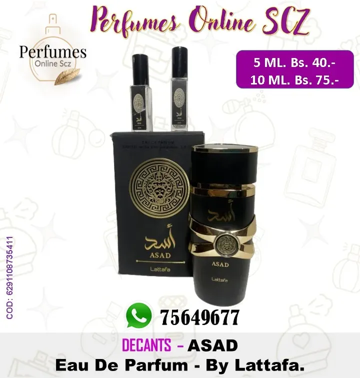 Asad de Lattafa Perfumes es una fragancia de la familia olfativa Oriental para Hombres. Asad se lanzó en 2021. Las Notas de Salida son pimienta negra, tabaco y piña; las Notas de Corazón son ...