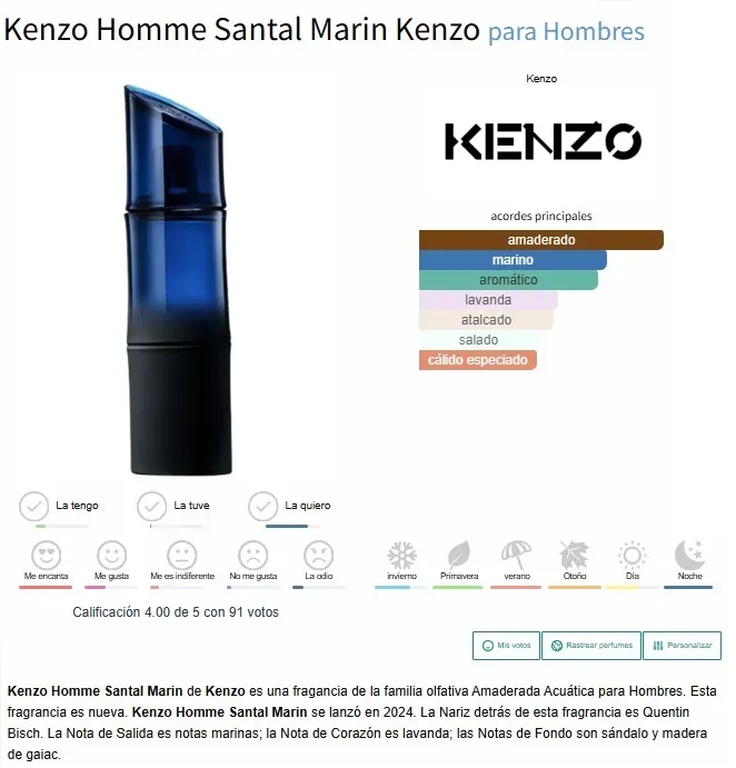 KENZO HOMME SANTAL MARIN EDT 110 ML. - By Kenzo.