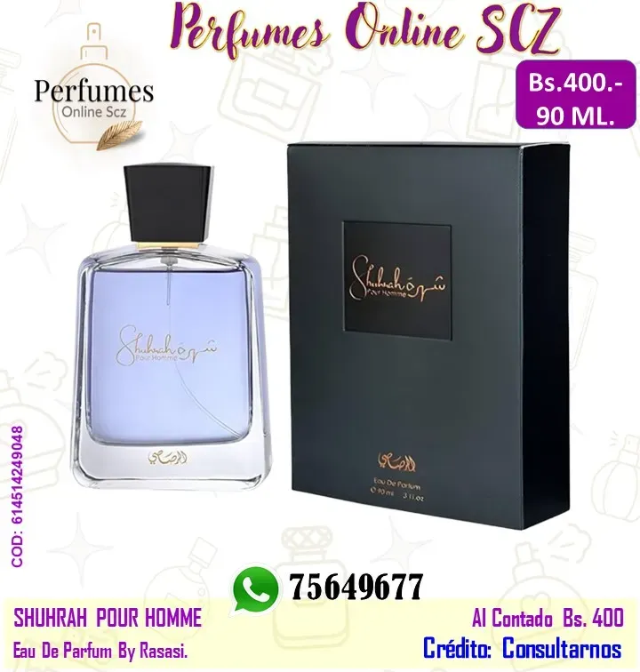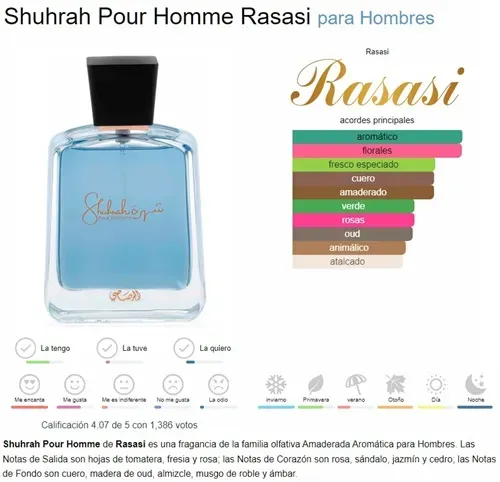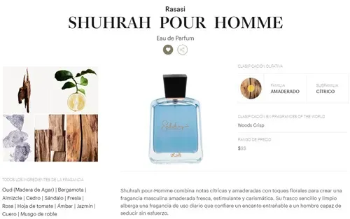 SHUHRAH POUR HOMME EDP 90 ML. By Rasasi - Inspirado en NUDIFLORUM de Nasomatto.