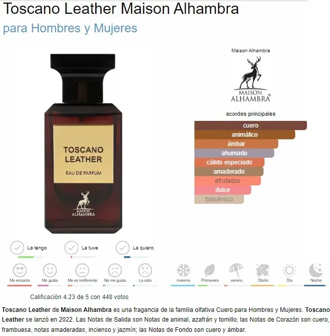 TOSCANO LEATHER EDP 80 ML. By Maison Alhambra - Inspirado en TUSCAN LEATHER de TOM FORD.