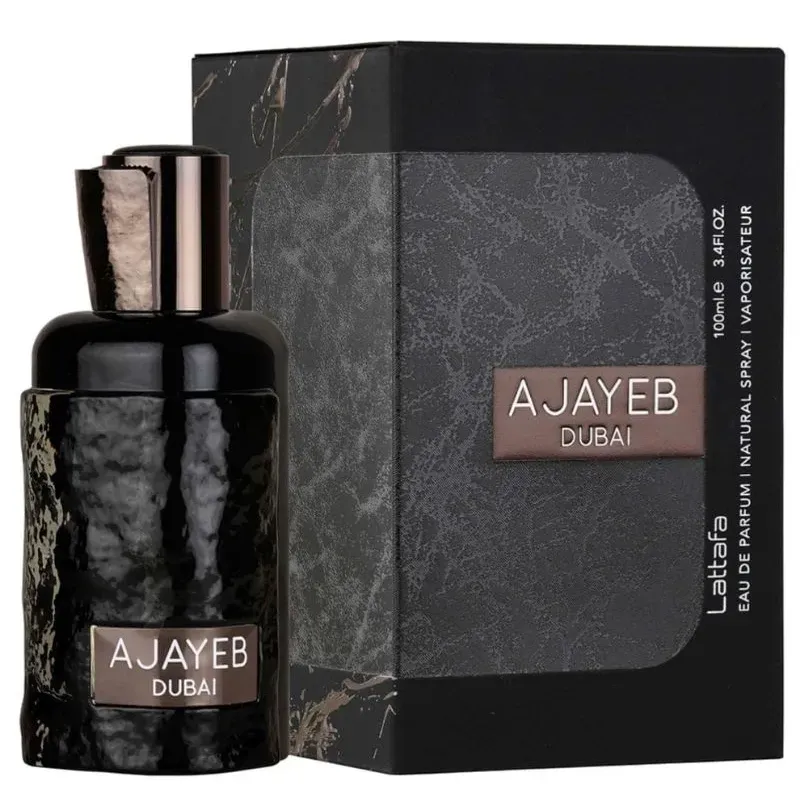 Perfume AJAYEB DUBAI BLACK de Lattafa Unisex decant de 10ml. Notas de Salida : piña, azafrán Notas de Corazón : café, hojas de violeta Notas de fondo : Caramelo de mantequilla, sándalo, vainilla