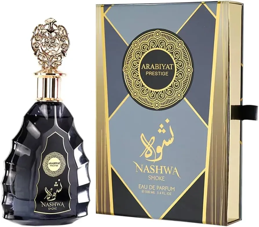 Arabiyat Prestige Nashwa Smoke juega maravillosamente los contrastes de poder y espíritu lujoso con un profundo misterio ahumado. Esta fragancia de oud – ámbar es fuerte y cálidamente sensual con matices oscuros y profundos.