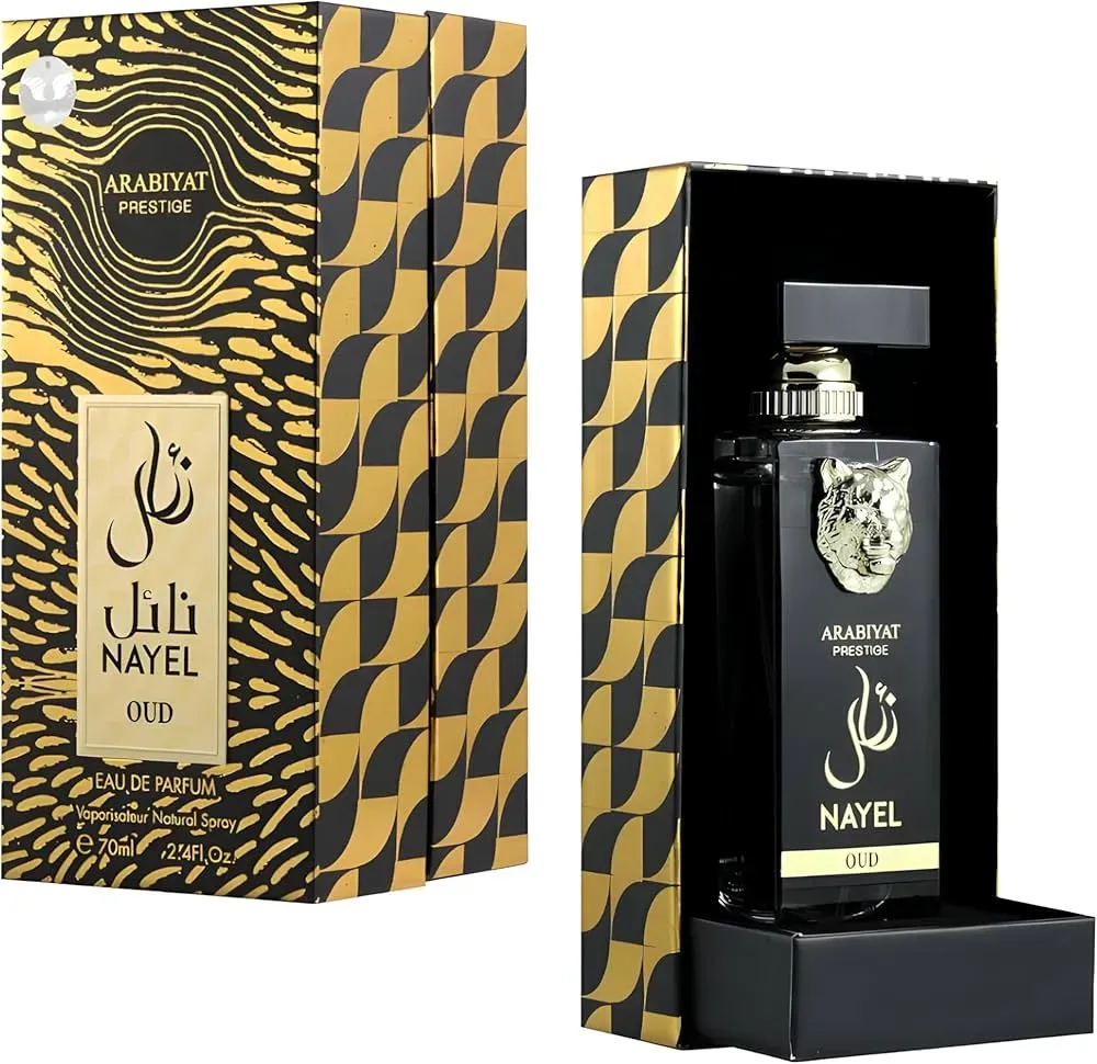 ARABIYAT PRESTIGE Nayel Oud es una fragancia moderna que combina la oscura intensidad sensual del oud con la vitalidad de las notas florales y especiadas chispeantes y luminosas. Es una fragancia intensamente sexy y seductora creada con una sensibilidad elegante y sofisticada.