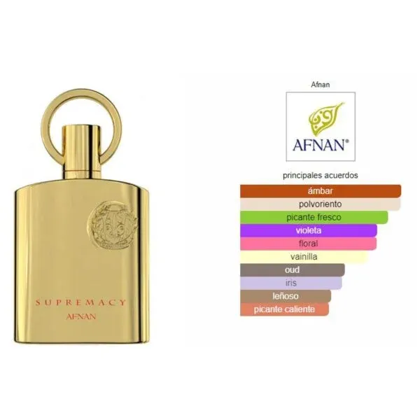 Supremacy in Oud de Afnan es una fragancia de la familia olfativa Aromática Especiada para Hombres y Mujeres. Supremacy in Oud se lanzó en 2021. Las Notas de Salida son azafrán, nuez moscada y lavanda, las Notas de Corazón son madera de oud y notas dulces, las Notas de Fondo son pachulí y almizcle.