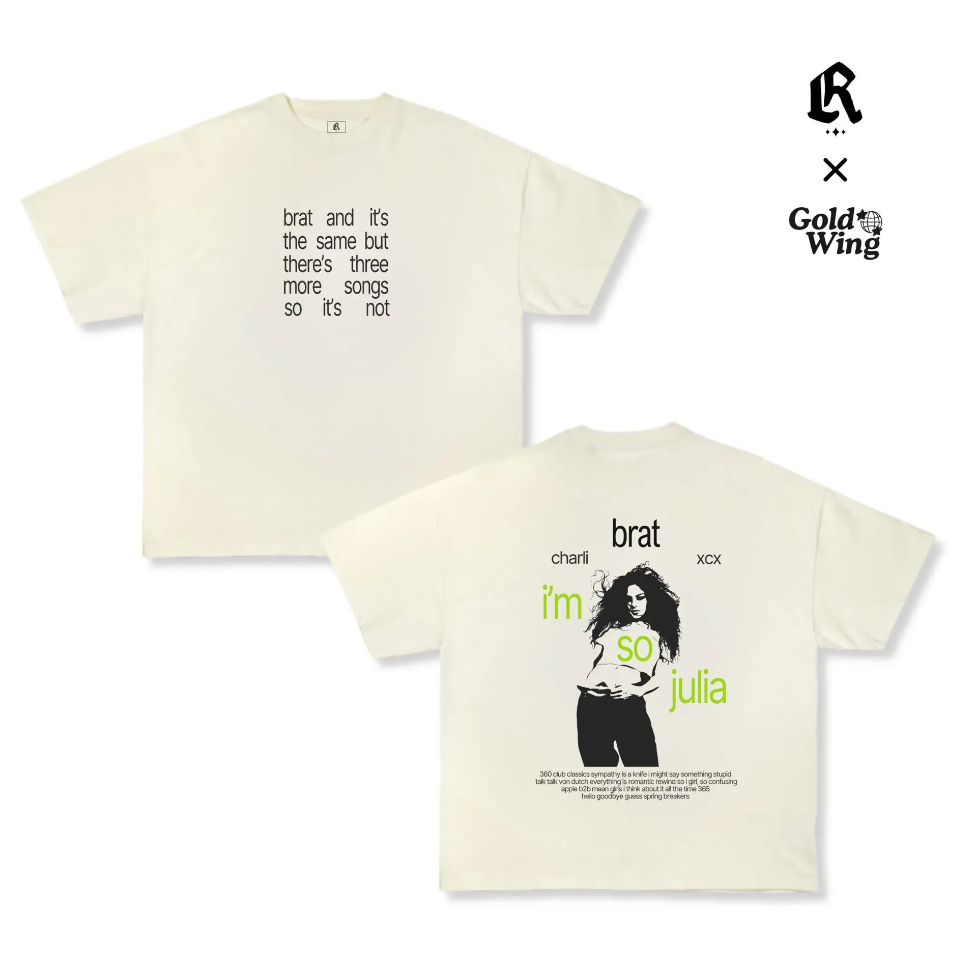 Tee inspirada en Brat and it’s the same but there’s three more songs so it’s not de Charli XCX.