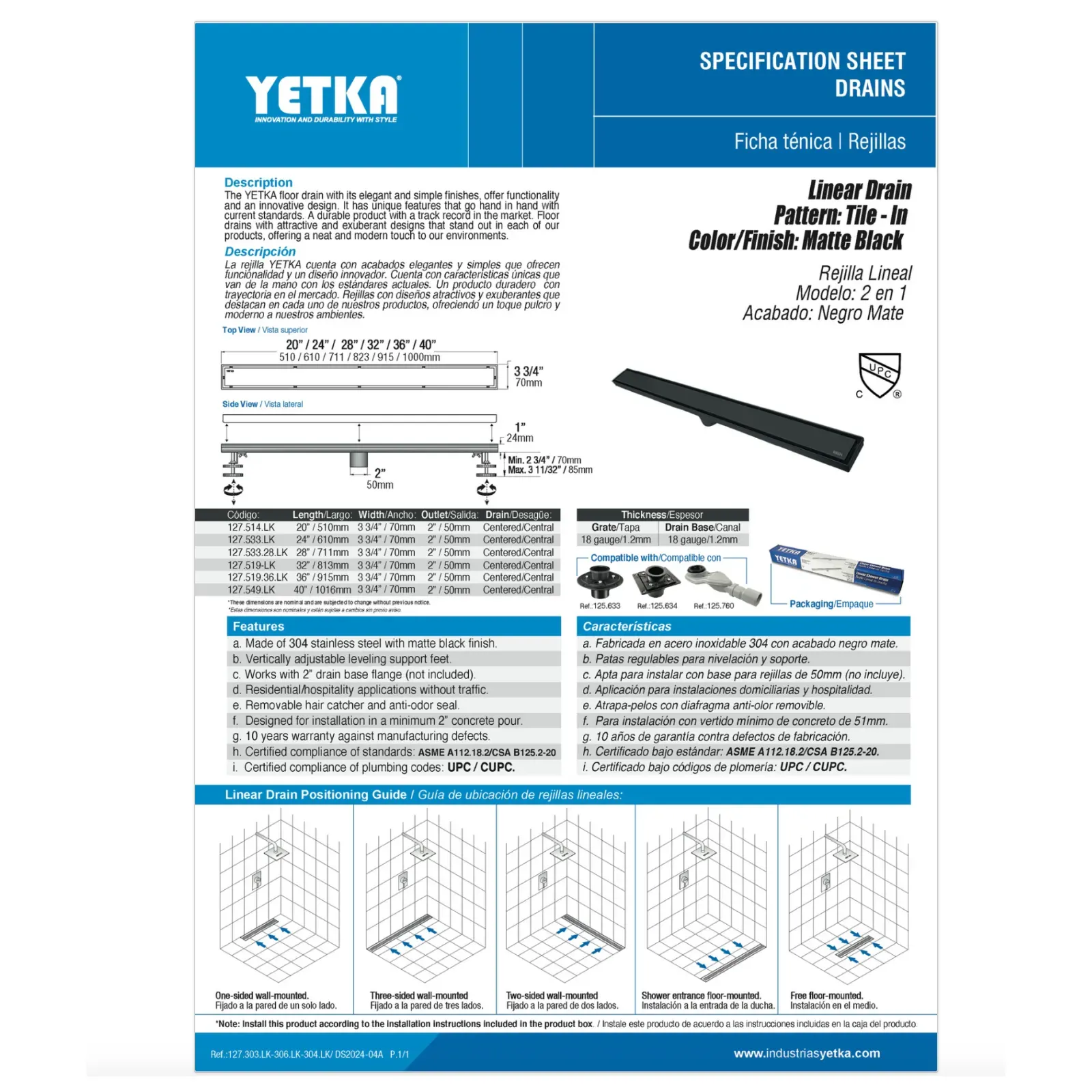 GPL0829 YETKA REJILLA LISA 2 EN 1 NEGRO 60x7CM LINEAL (125533LK) - INOX