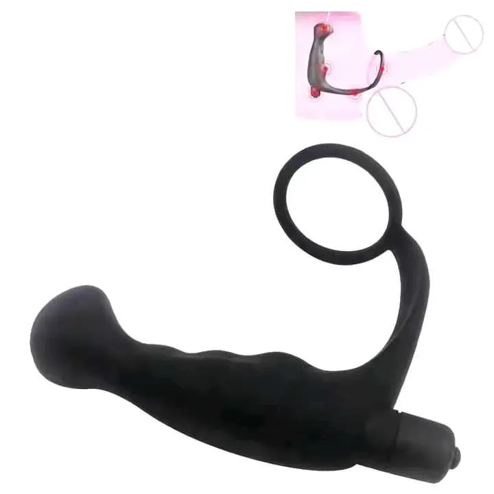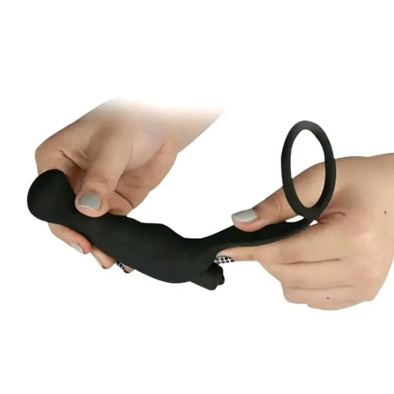 Anillo Retardante y Estimulador de Próstata con Plug Anal y Vibrador