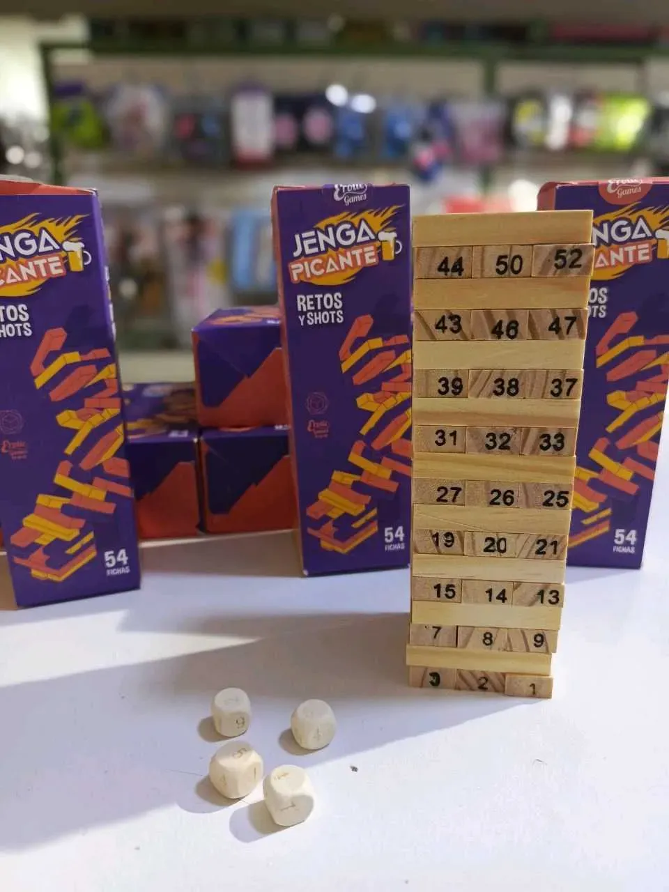 El juego "Jenga Picante" 🔥es una versión divertida y atrevida del clásico Jenga, ideal para grupos. En lugar de simplemente retirar bloques de madera, los jugadores enfrentan retos y desafíos que involucran tomar tragos y realizar acciones divertidas. 😏