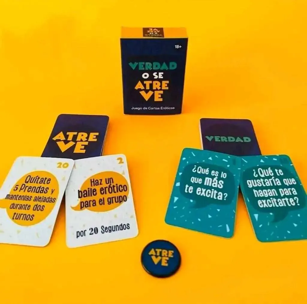 -40 tarjetas entre verdades y atreve, en este juego debes ser sincero o atreverte al reto, todo está permitido y solo es obligatorio pasarla bien.