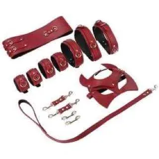 KIT SADO DE LUJO. Producto exclusivo de alta calidad con cuero grueso, piezas metálicas doradas y caja de madera lujosa. Ideal para amantes del BDSM que buscan calidad premium. Color sujeto a disponibilidad de stock.
