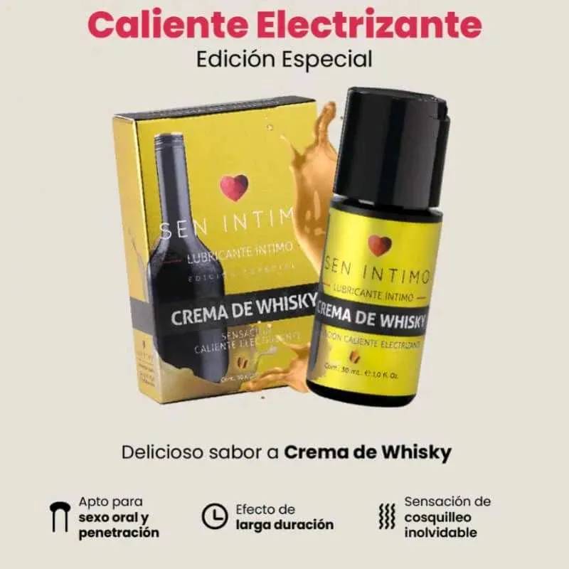 Aumenta tu sensibilidad intensificando tus sensaciones con nuestro exquisito y provocativo Lubricante íntimo con sabor a Crema de Whisky y sus sensación caliente y Electrizante.