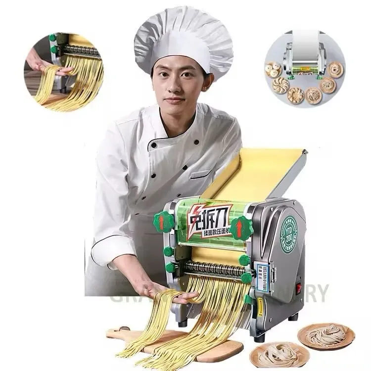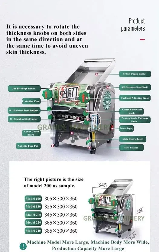 Esta máquina puede cambiar cortadores para hacer fideos anchos, fideos estrechos, fideos redondos, piel de wonton, piel de bola de masa, pieles de Momo, et...
