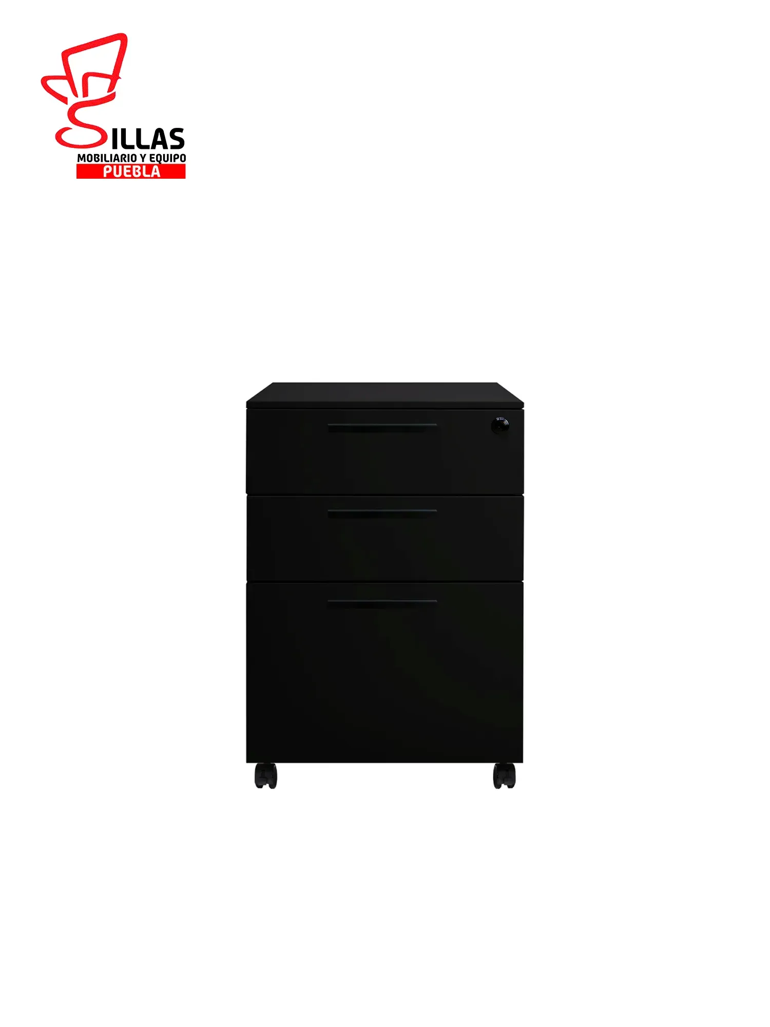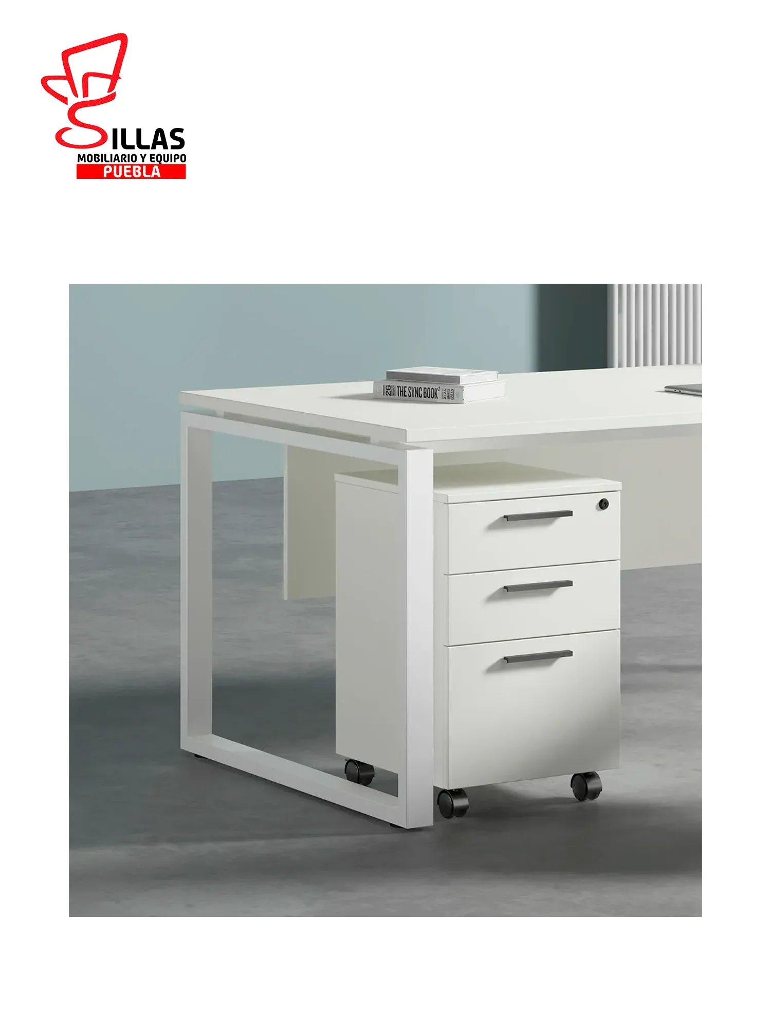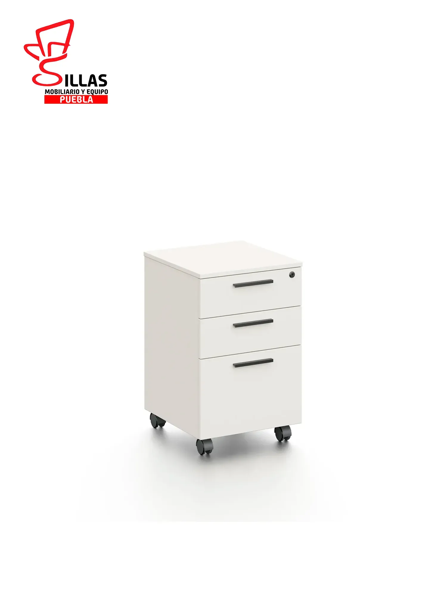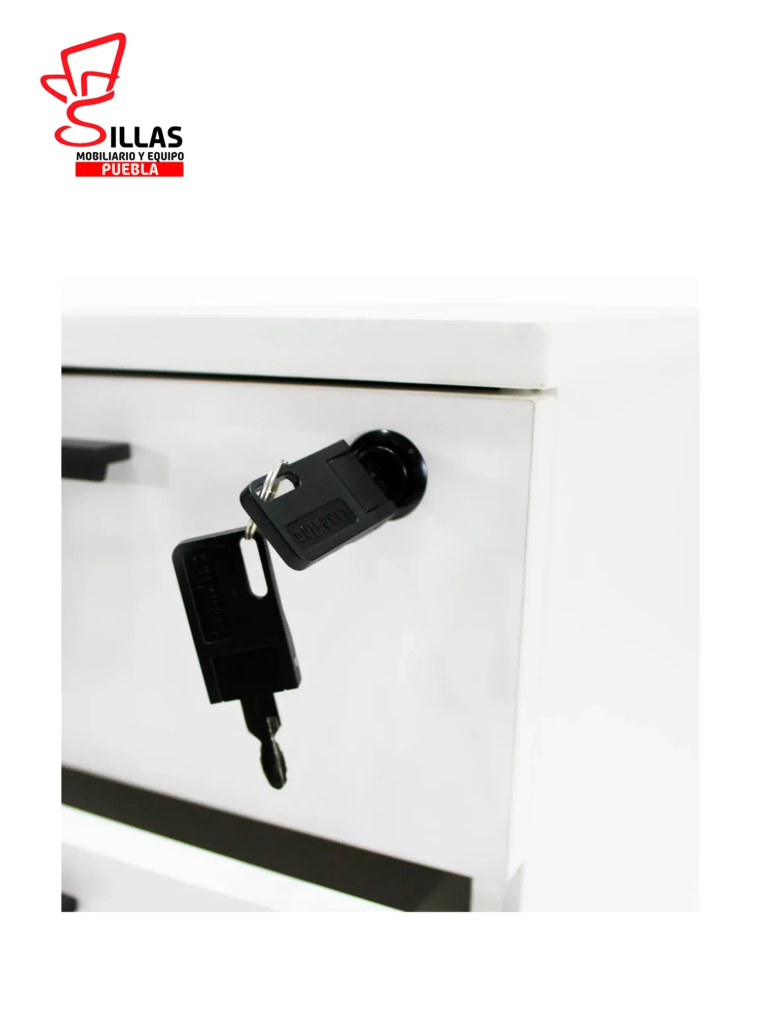 Estructura: Melamina Blanco, con tiradores de Aluminio Negro, con 4 ruedas de PU,