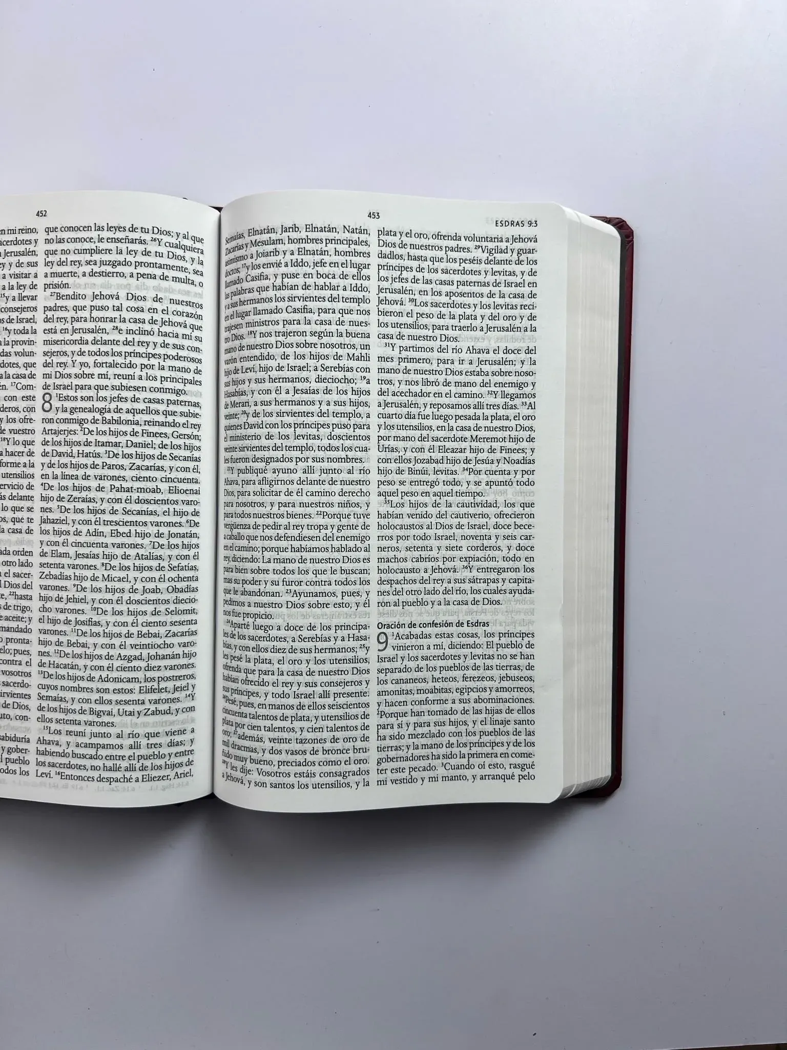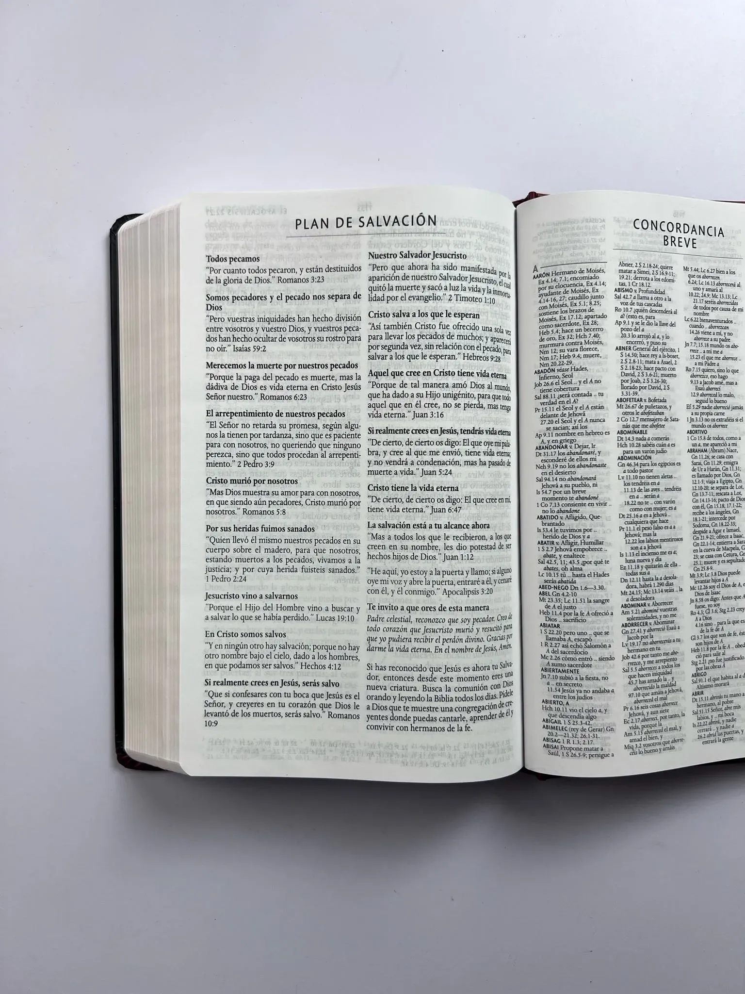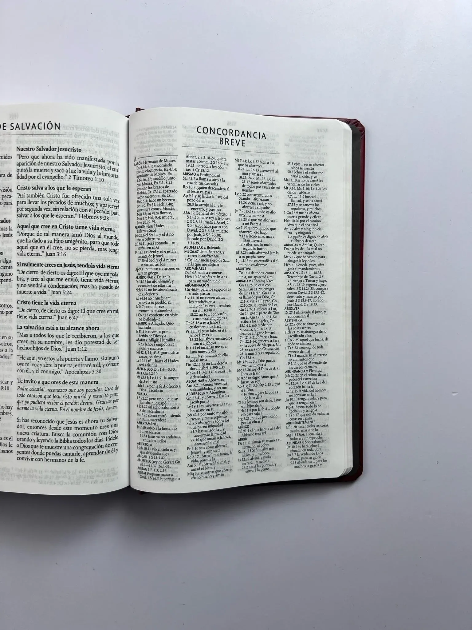 Biblia tamaño manual, ultrafina y con letra grande, tapa dura con un estudio conciso de los nombres de Dios.