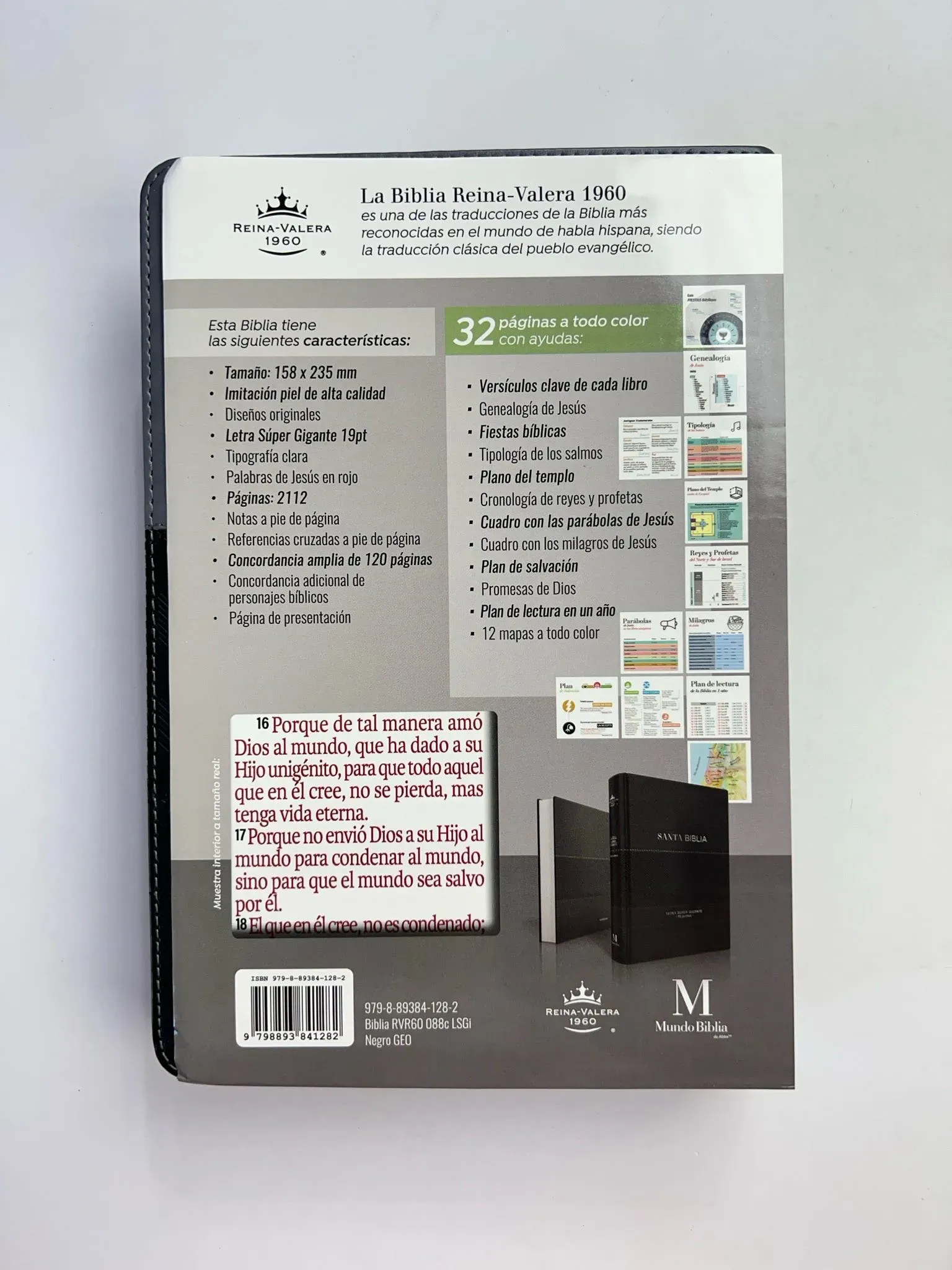 Santa Biblia RVR1960 Letra Súper Gigante – Cuerina Negra y Gris - Reina Valera 1960 - 19 puntos - ISBN 9798893841282
