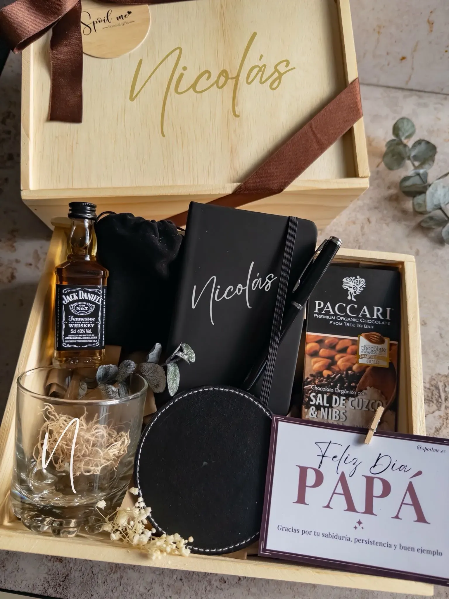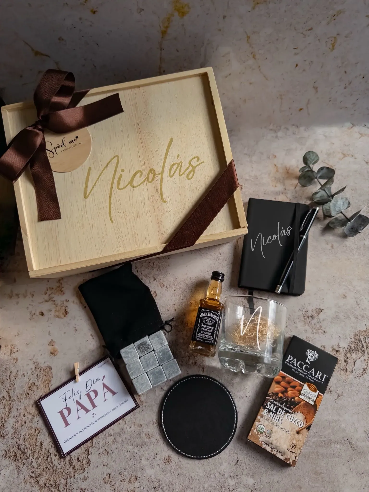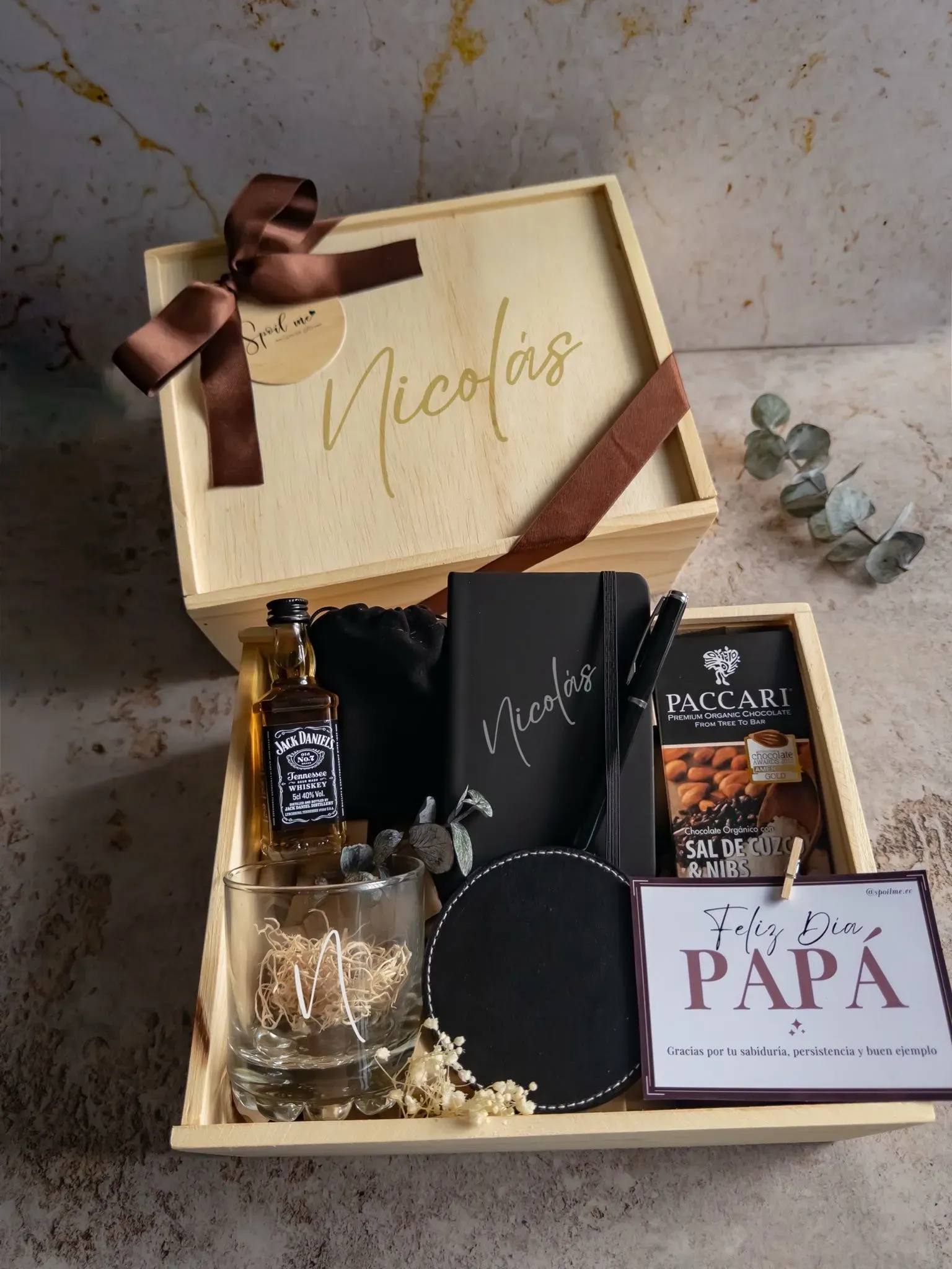 * Caja de madera pino con tapa deslizable, personalizada con grabado a láser.