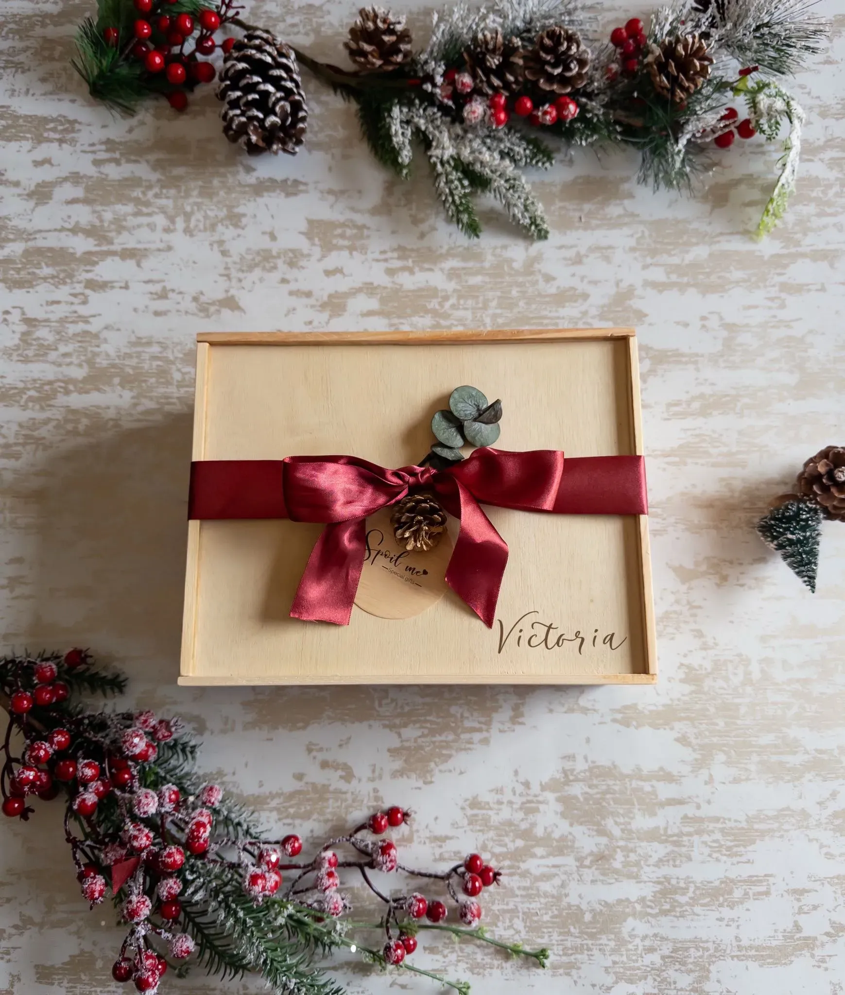 * Caja de pino con tapa deslizable, personalizada con grabado a láser