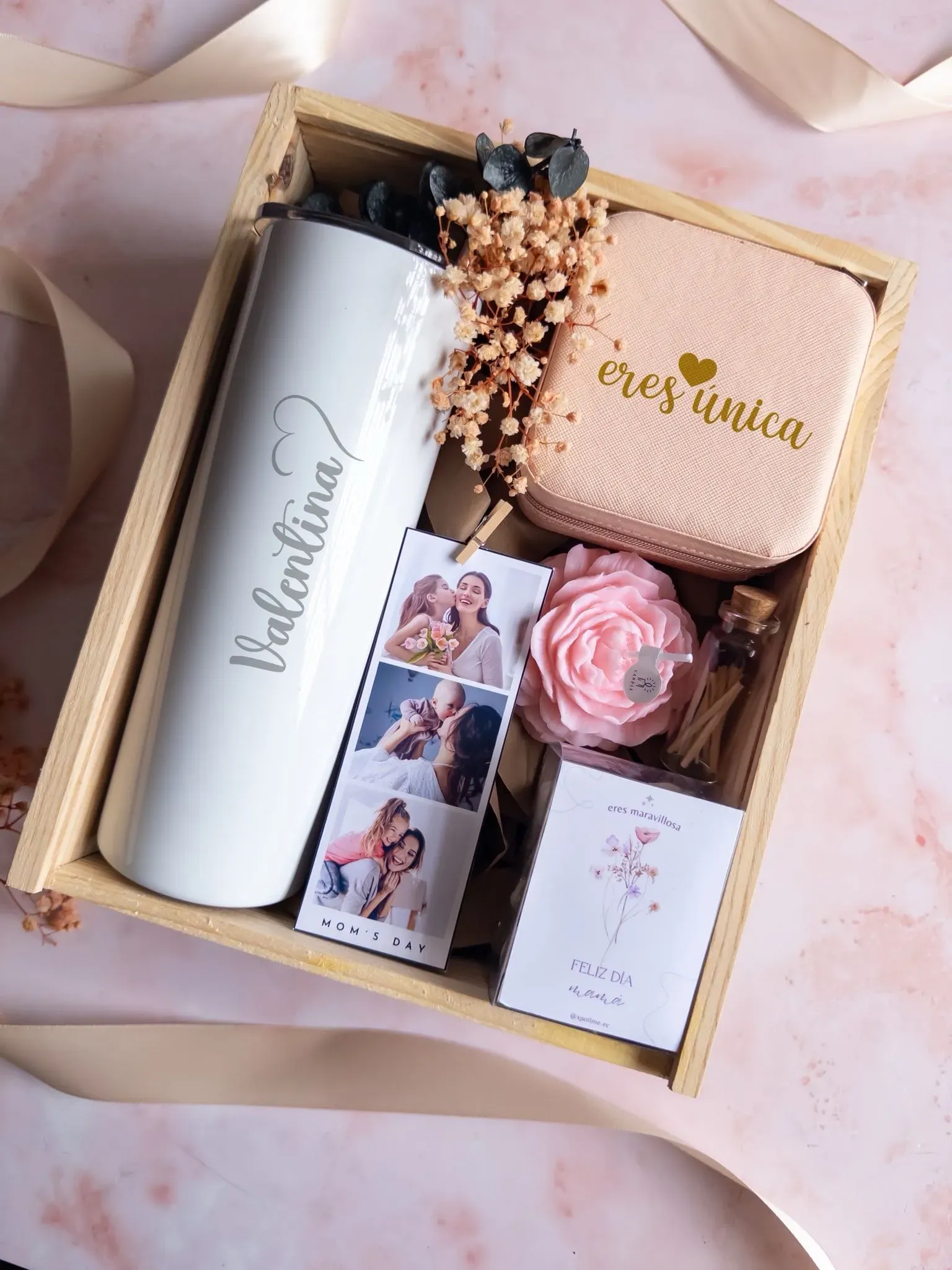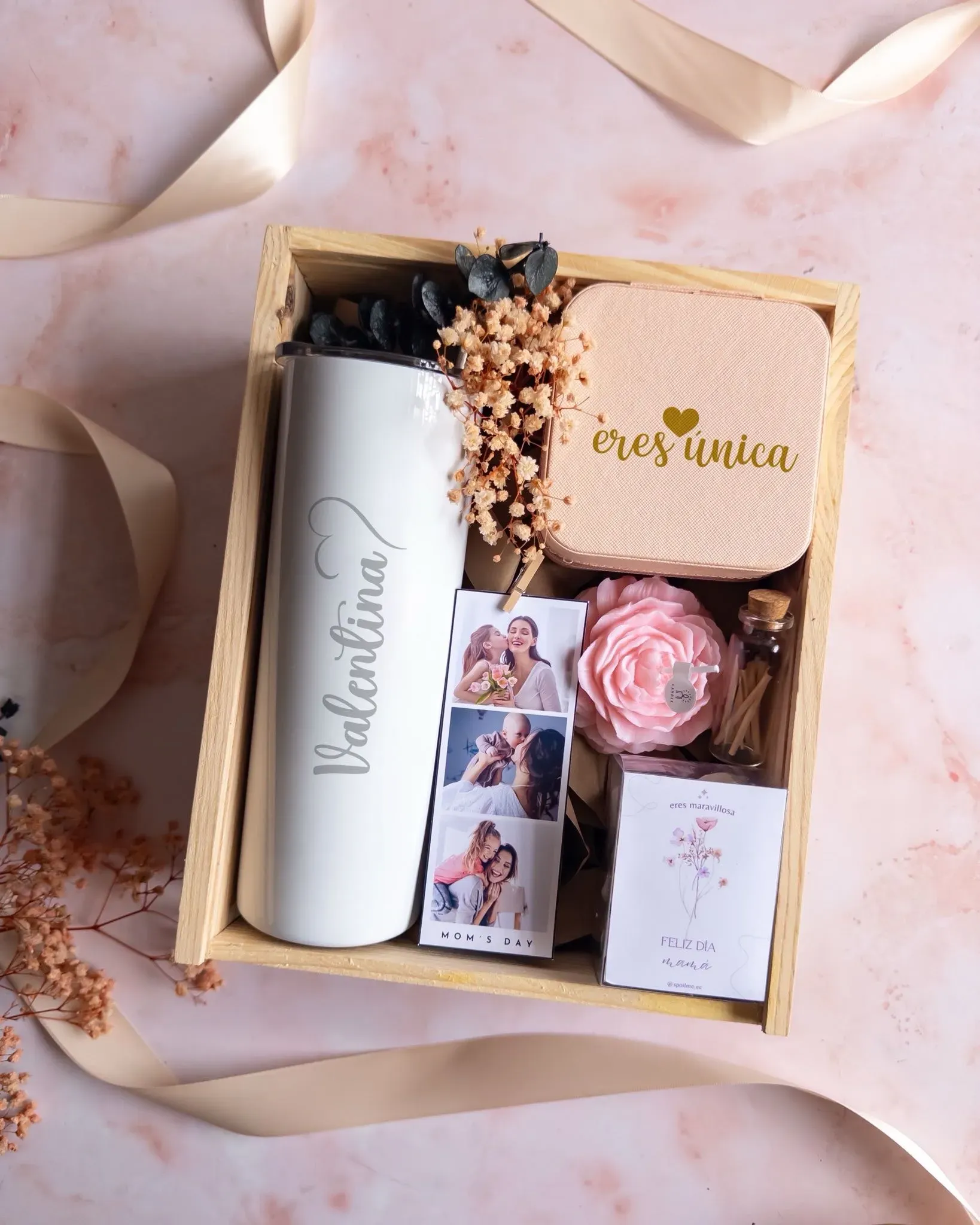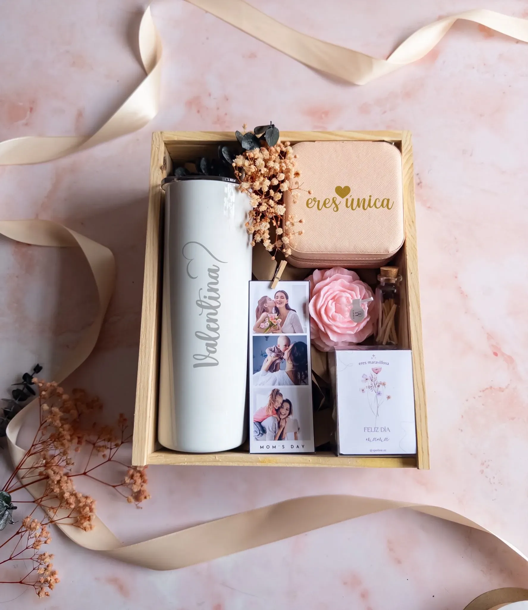 * Caja de pino con tapa deslizable, personalizada con grabado a láser