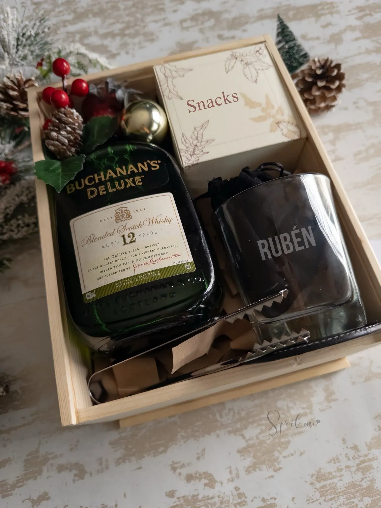 * Caja de pino con tapa deslizable, personalizada con grabado a láser