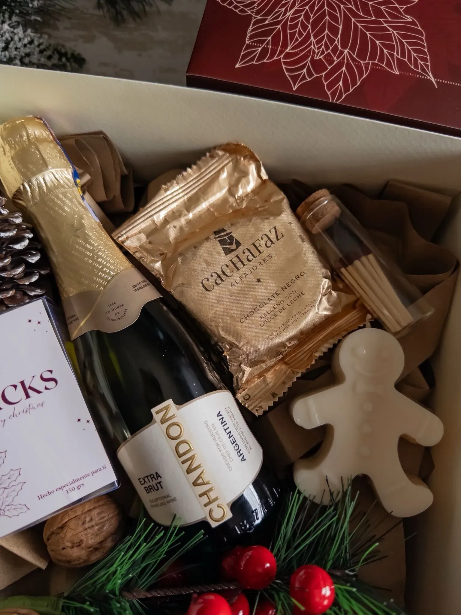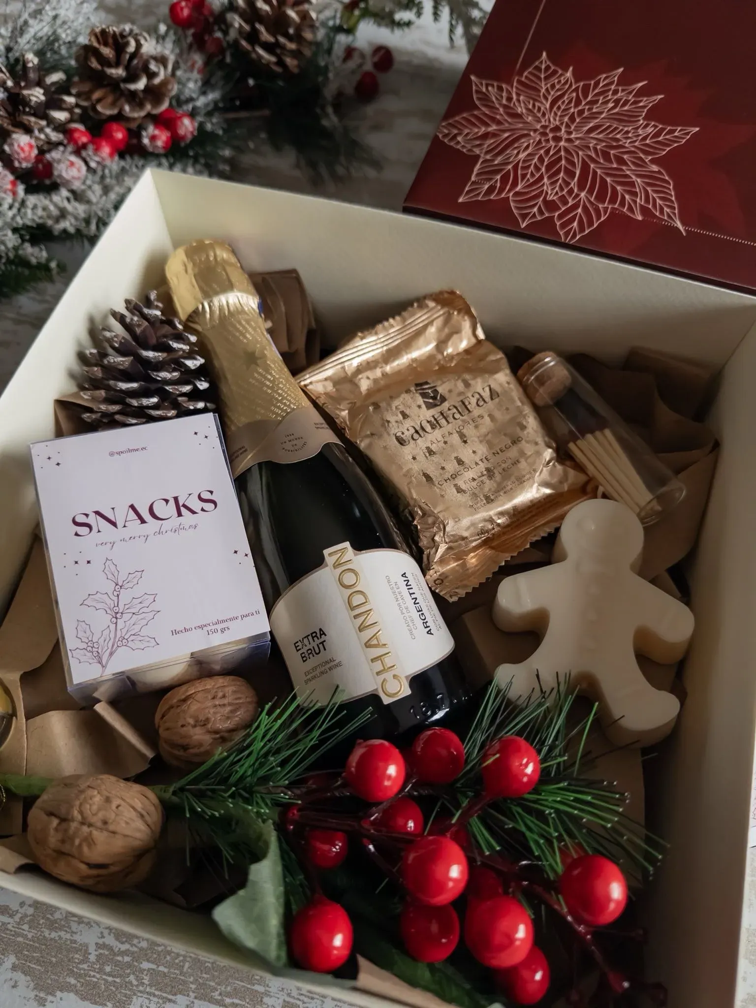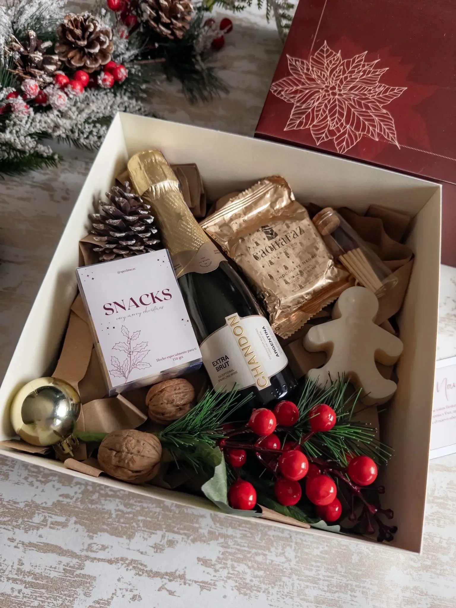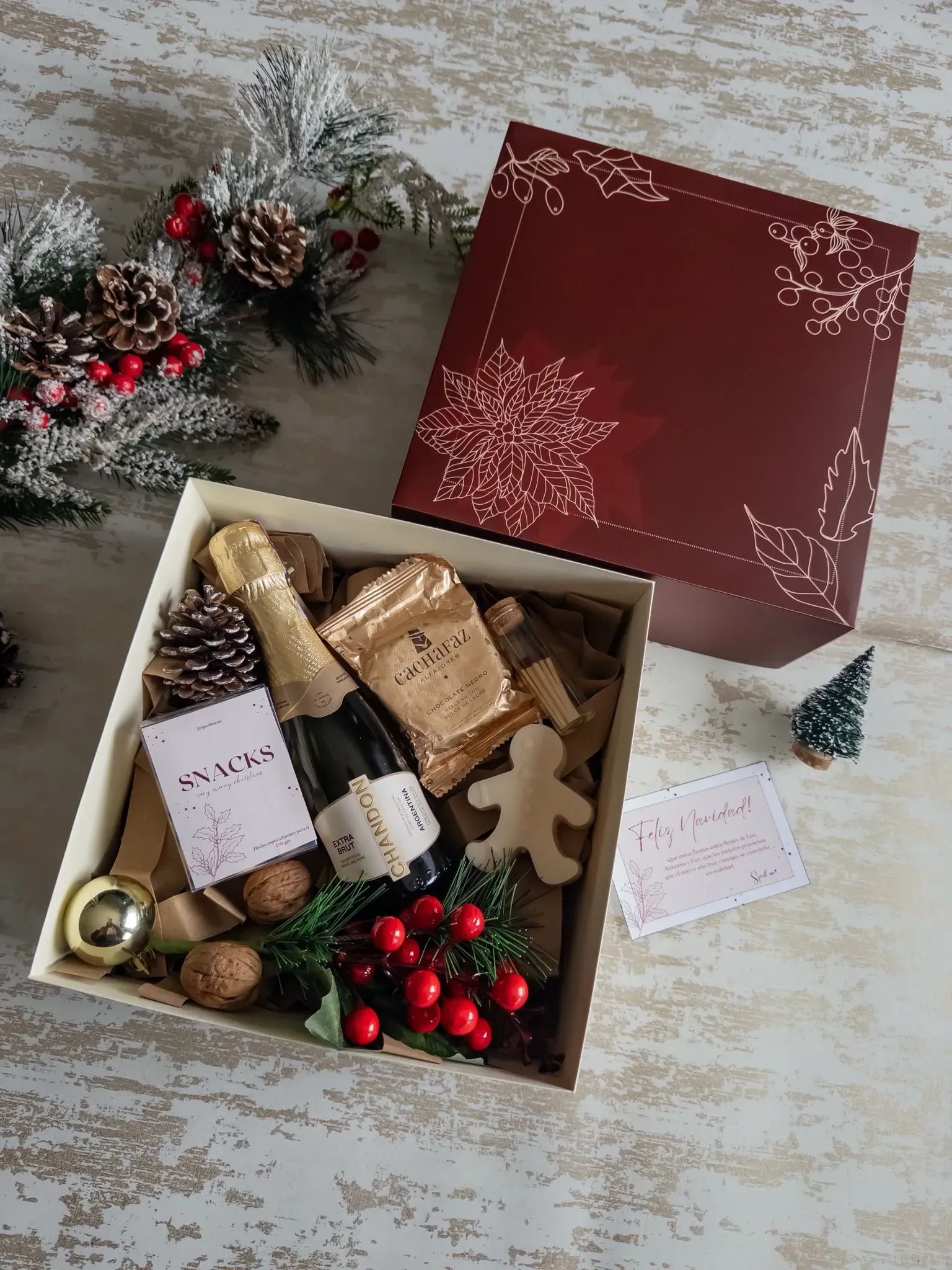 * Caja de cartulina reforzada personalziada con diseño navideño y logo