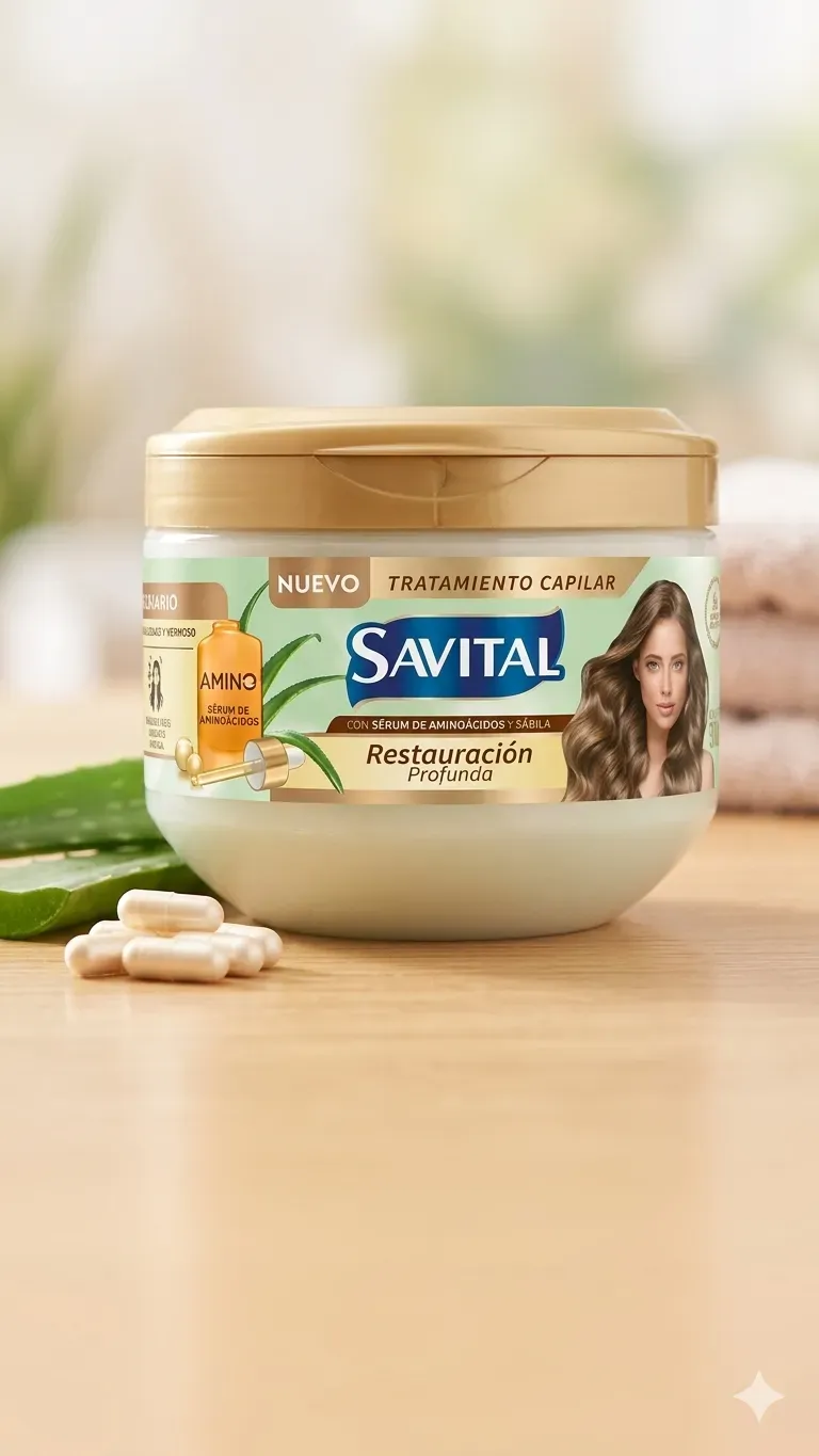Dale a tu melena el cuidado intensivo que necesita con el nuevo tratamiento capilar de Savital. Esta fórmula avanzada combina la sabiduría de la naturaleza con la ciencia capilar para devolverle la vida, el brillo y la suavidad a los cabellos más castigados.
