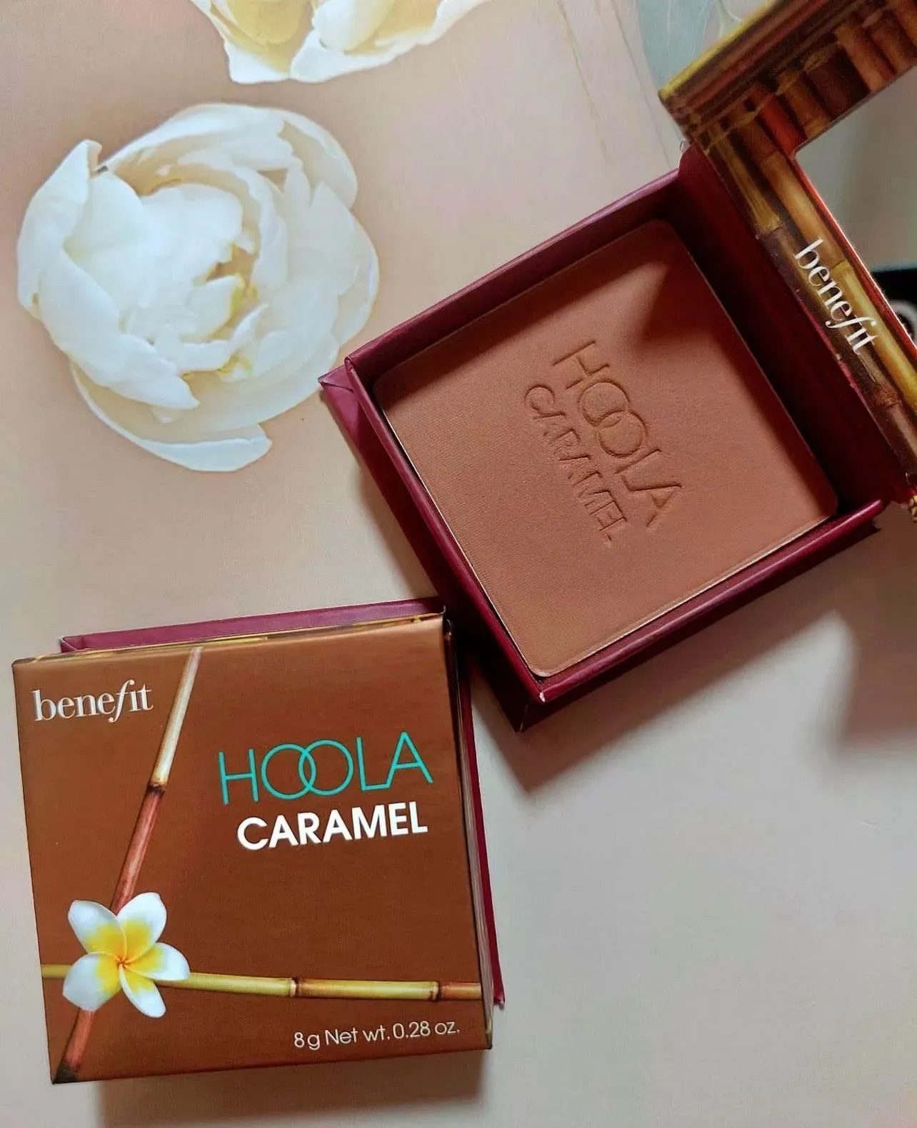 Un bronceador en polvo galardonado, suave como la seda, con un acabado mate de apariencia natural, disponible en cuatro tonos: Hoola, Hoola Lite, Hoola Toasted y Hoola Caramel.