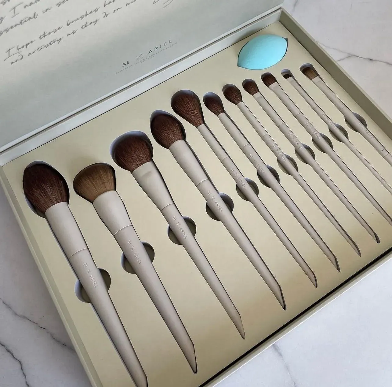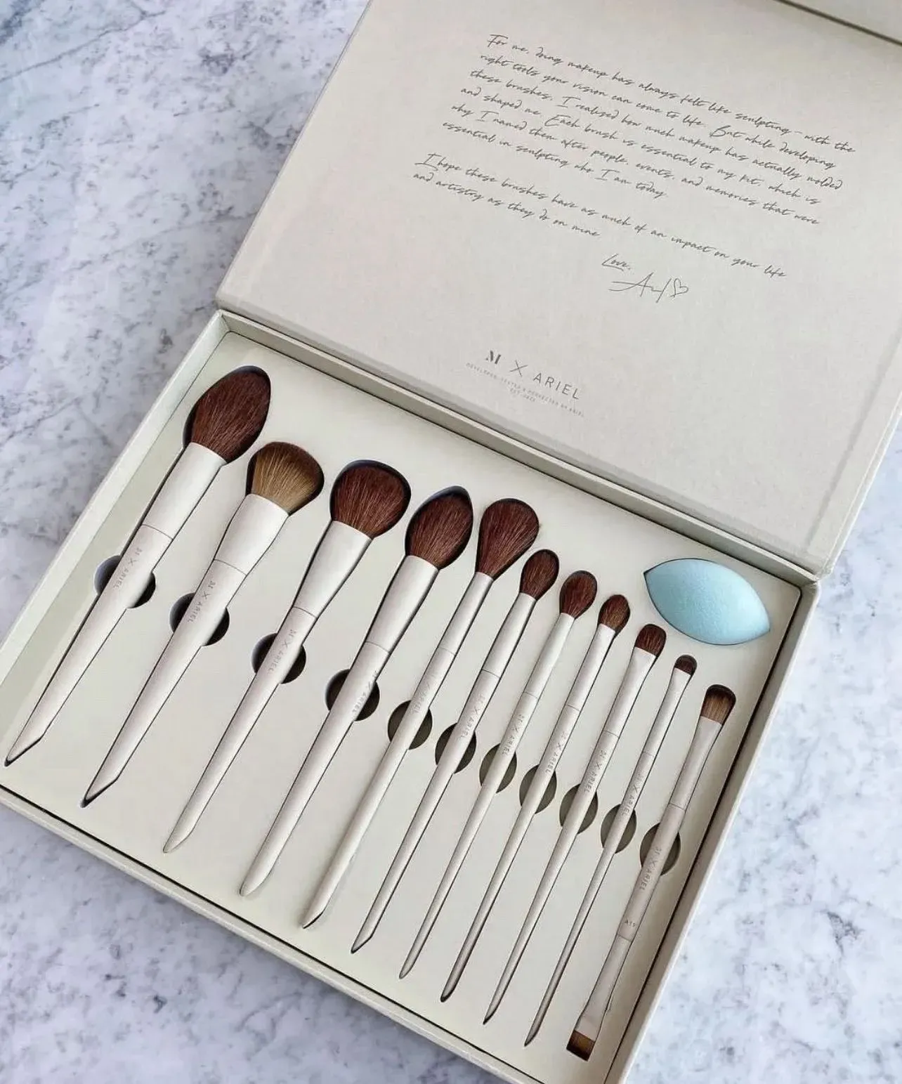 Makeup by Ariel no pudo encontrar el kit de sus sueños, así que lo creó: el juego de brochas para rostro y ojos Morphe X Ariel Signature Look de 12 piezas y una esponja suave para esculpir.