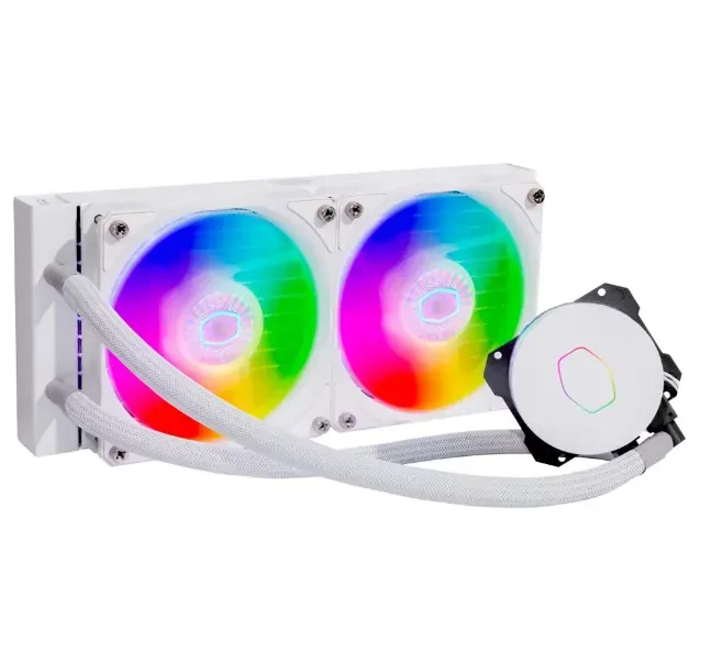 La CoolerMaster MasterLiquid ML240L V2 ARGB White Edition, con su nueva bomba con componentes internos mejorados y dos ventiladores ARGB de 120 mm, te permitirá disfrutar del silencio y el rendimiento de un sistema de refrigeración líquida para tu sistema.