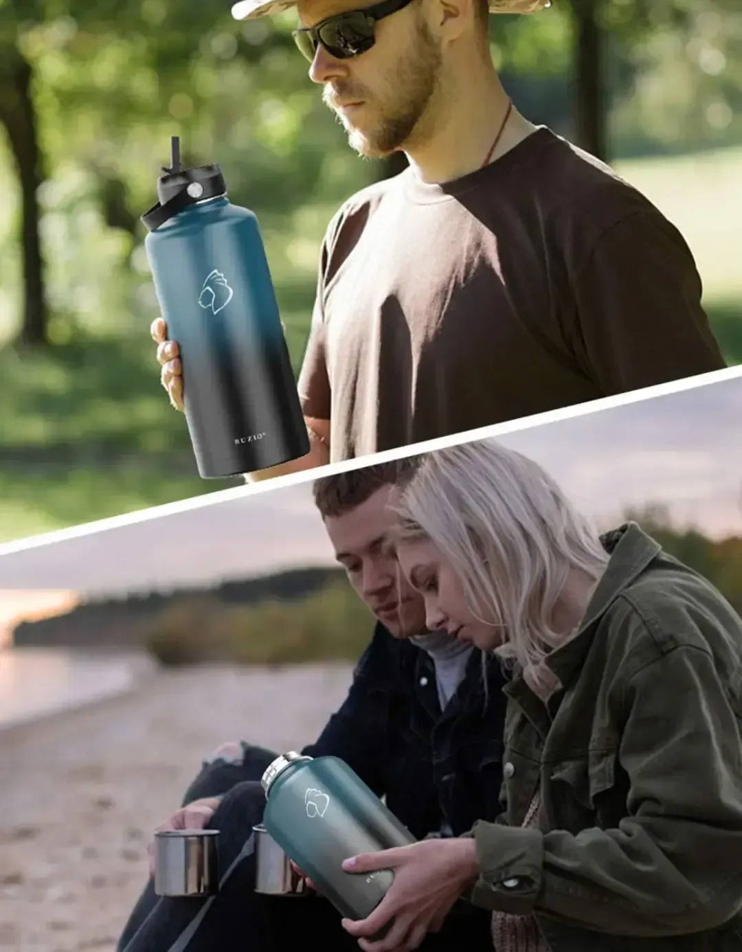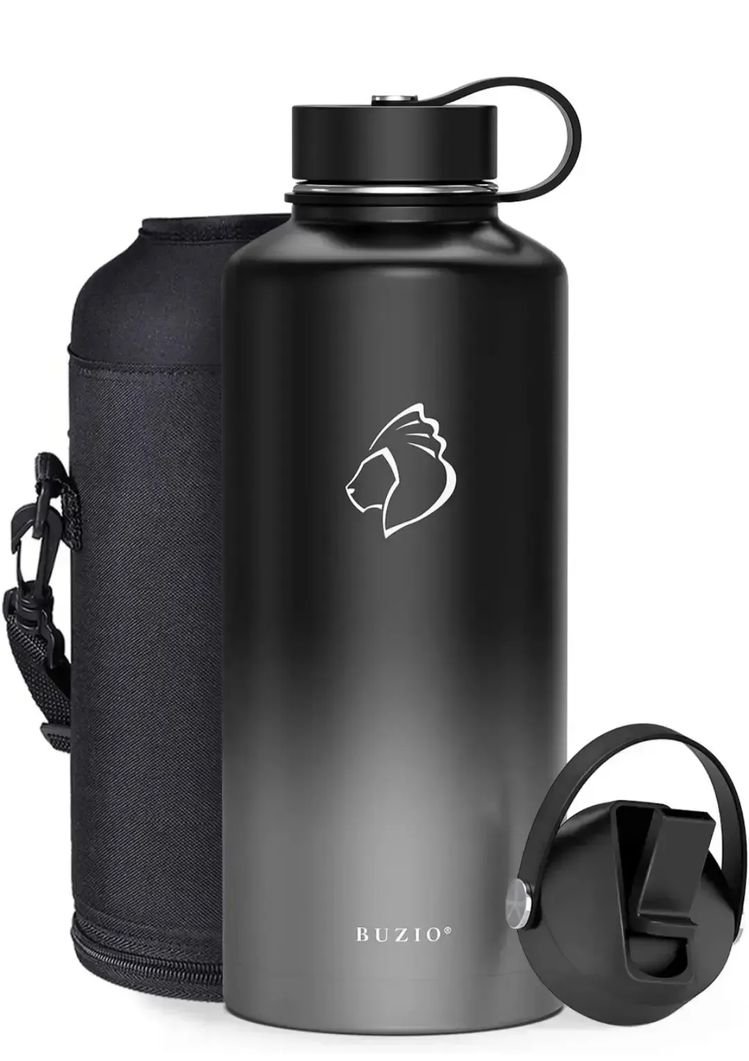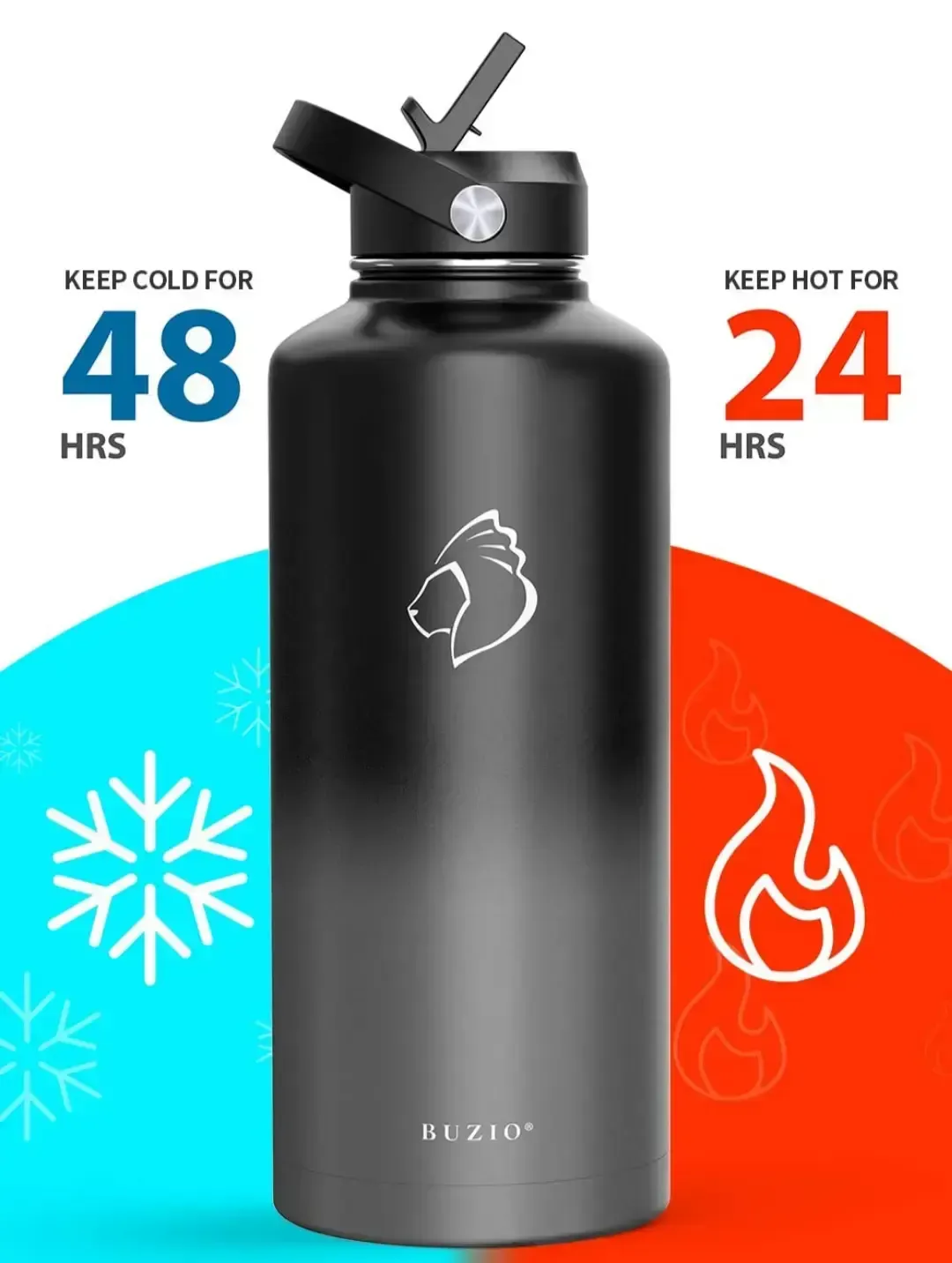 BUZIO Botella de agua aislada con tapa de pajilla y tapa flexible, 22 oz, 32 oz, 40 oz, 64 oz, 87 oz moderna, acero inoxidable de doble vacío, fría por 48