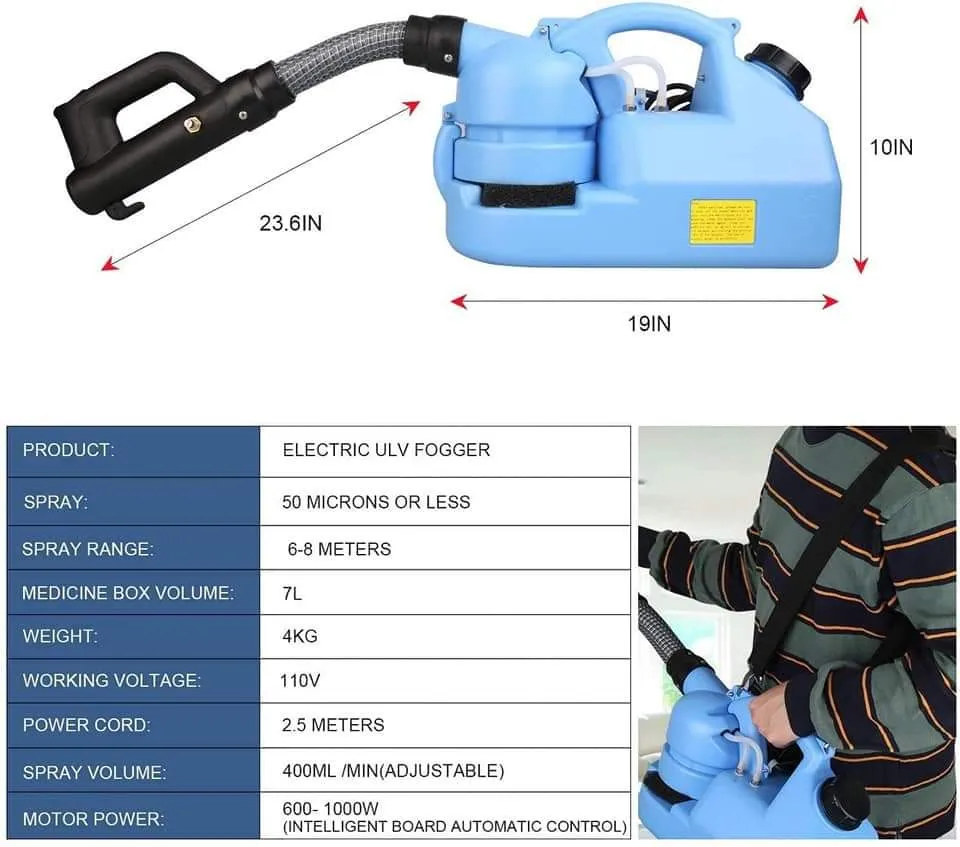 ATHLERIA 7L Eléctrico ULV Fogger – Pulverizador portátil ultra bajo – Máquina de pulverización adecuada para interior y exterior público 110V