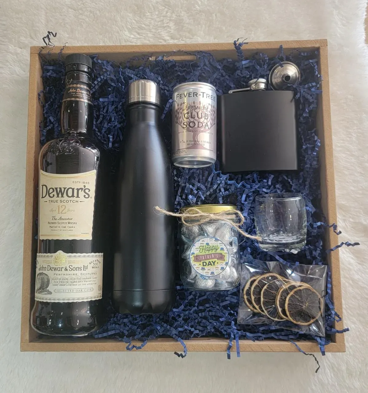 INCLUYE: BOTELLA DE SU PREFENCIA, 1 PETACA METALICA, 1 BOTELLA TERMICA, 1 VASO EN CRISTAL GRABADO, 1 FUNDA CON 5 LIMONES DESHIDRATADOS, 1 FRASCO DE CRISTAL CON 24 CHOCOLATES KISSES, 1 MINI LATA DE SODA, 1 BANDEJA ENVOLTURA EN EMPAQUE AL VACIO, LAZO PREMIUM EN CINTA SATIN, TAGS PERSONALIZADO DE TEMPO...