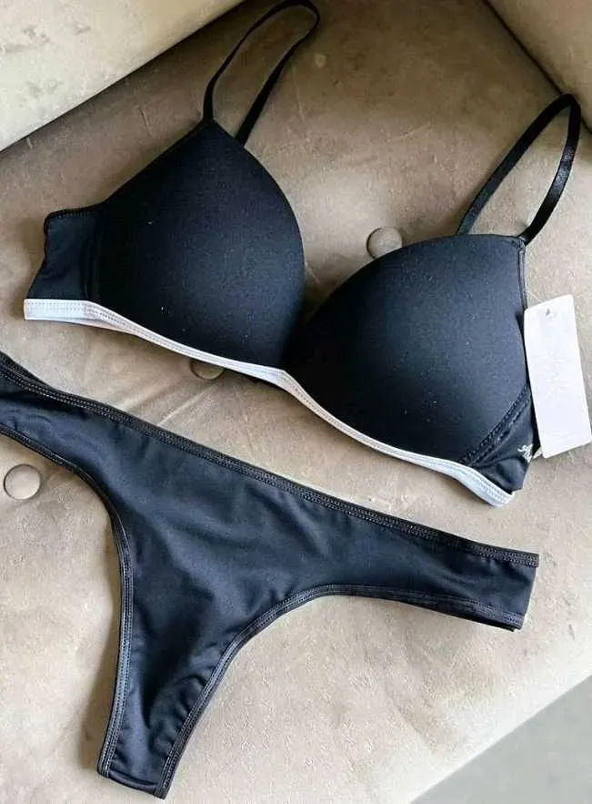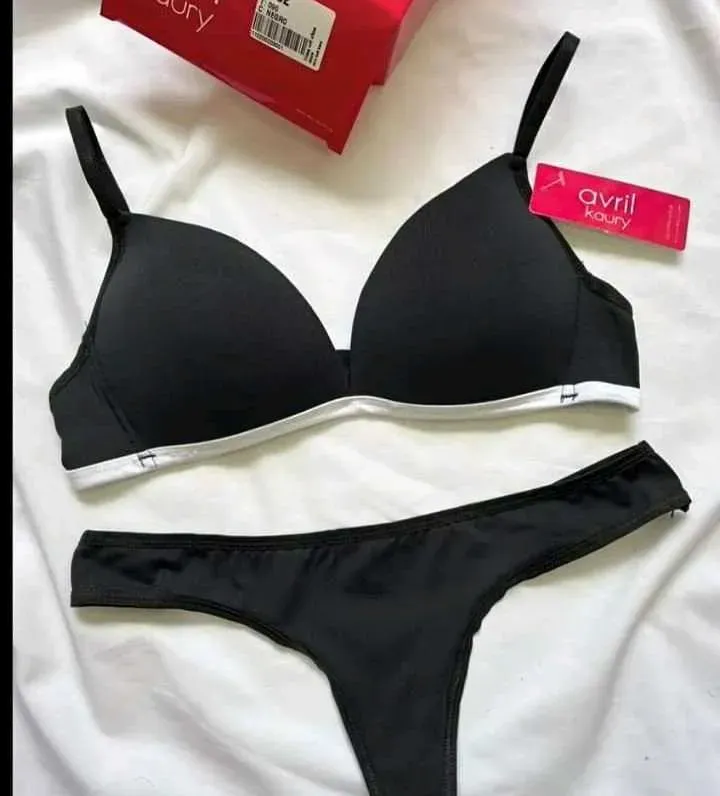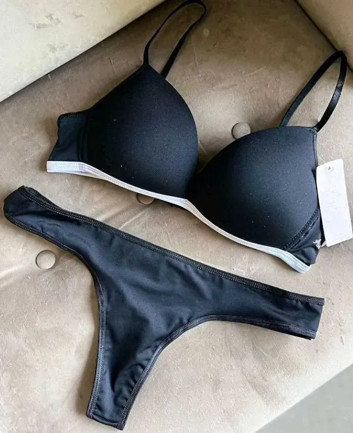 Conjunto de microfibra con detalles a contratono. Corpiño taza soft triangulito sin push up y cola less.