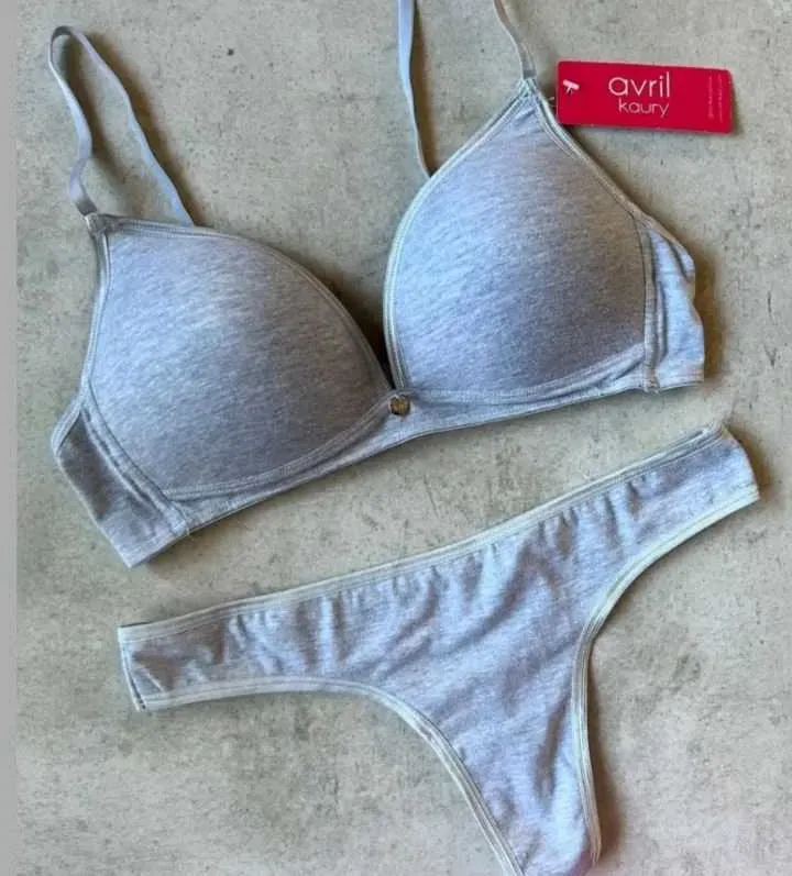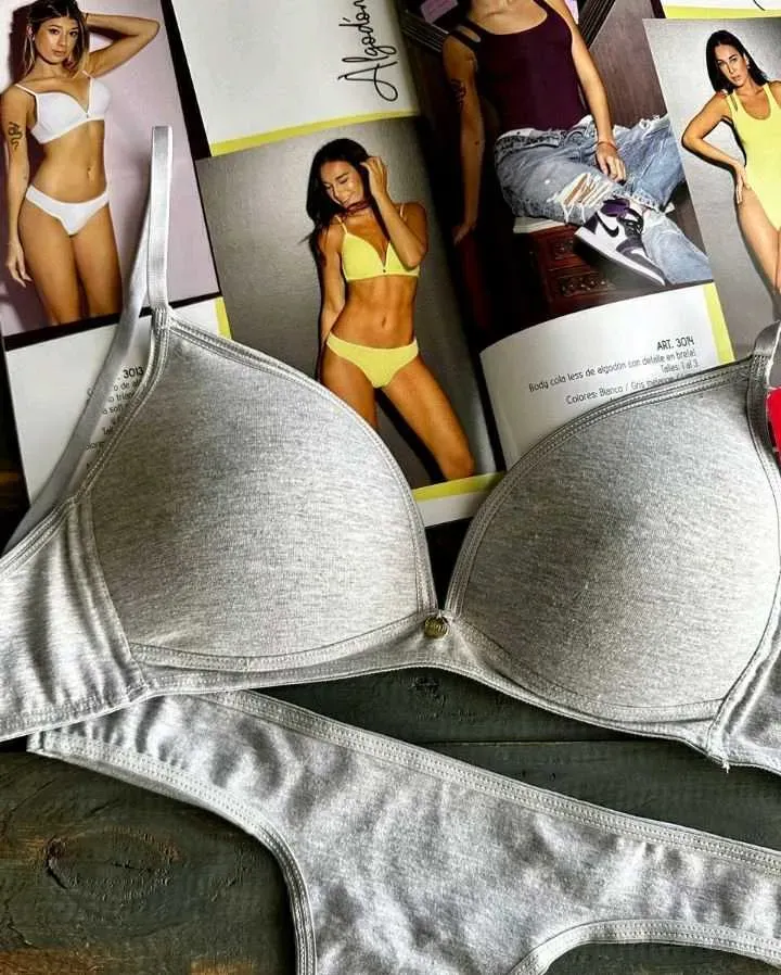 Conjunto de algodón. Corpiño triangulito con taza soft sin push up y cola less.