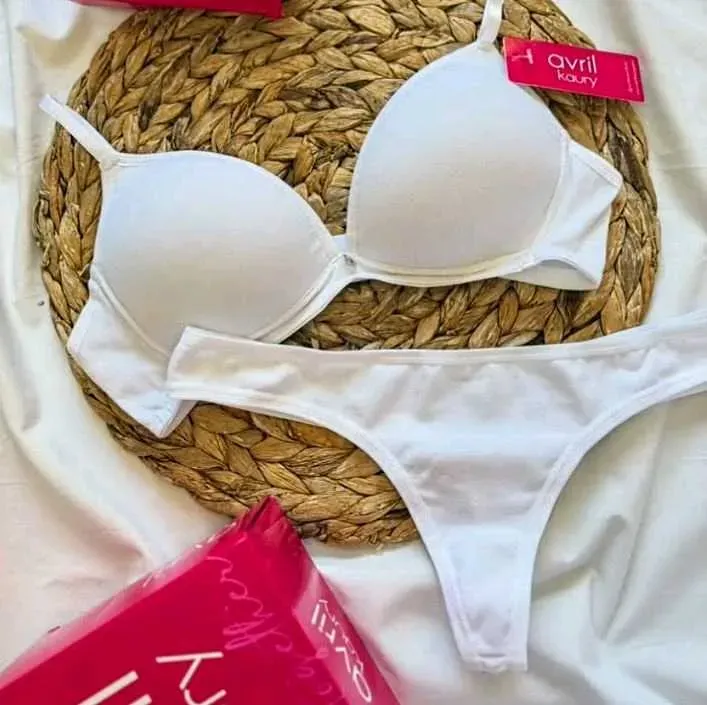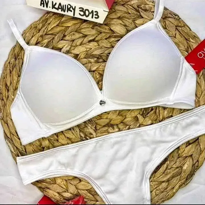 Conjunto de algodón. Corpiño triangulito con taza soft sin push up y cola less.