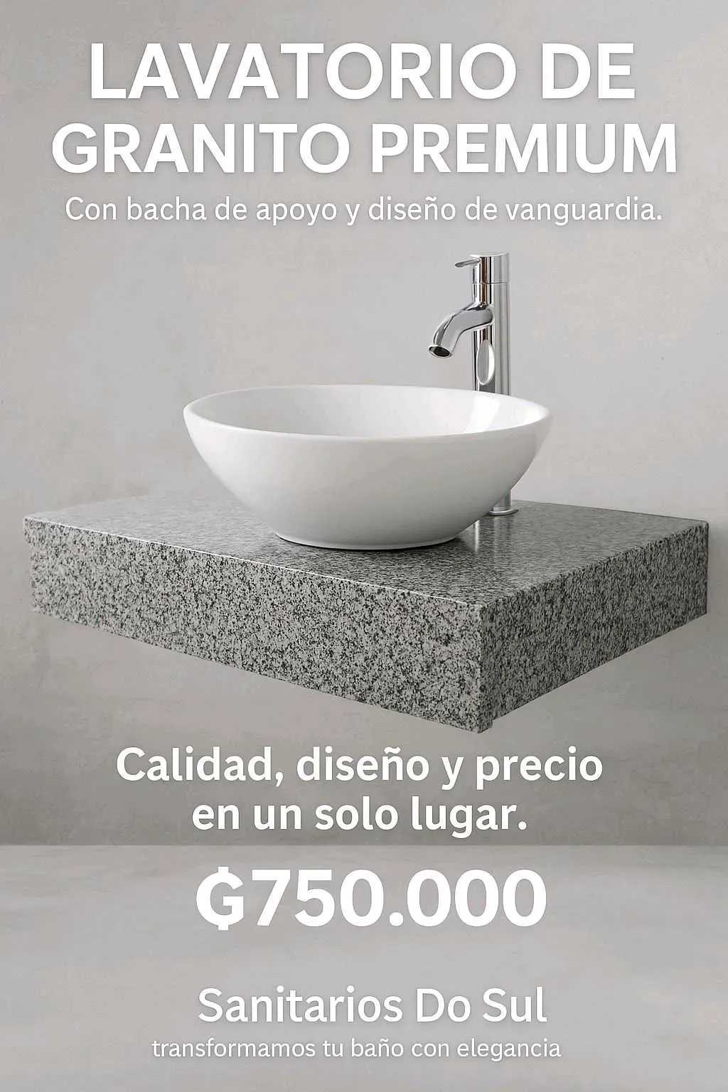 Lavatorio de granito de alta calidad con medidas de 65x45 cm y bacha sobre poner. Añade elegancia y funcionalidad a tu baño con este lavatorio moderno y duradero. Ideal para espacios pequeños. ¡Renueva tu baño con estilo!