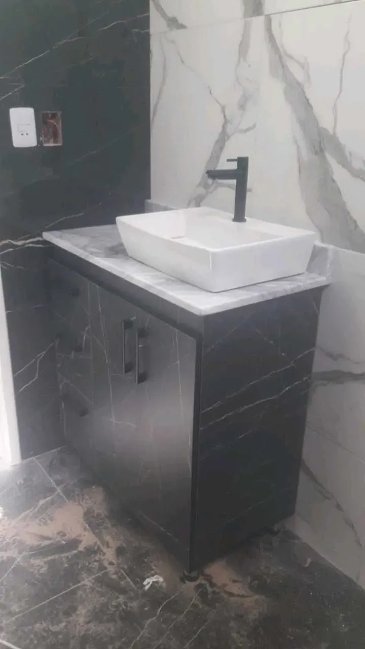 Mueble de baño con mesada de mármol de alta calidad, ideal para darle un toque elegante y funcional a tu baño. Con dimensiones de 91x45 cm, este mueble ofrece espacio de almacenamiento y estilo en uno solo. Renueva tu baño con este mueble de diseño exclusivo.
