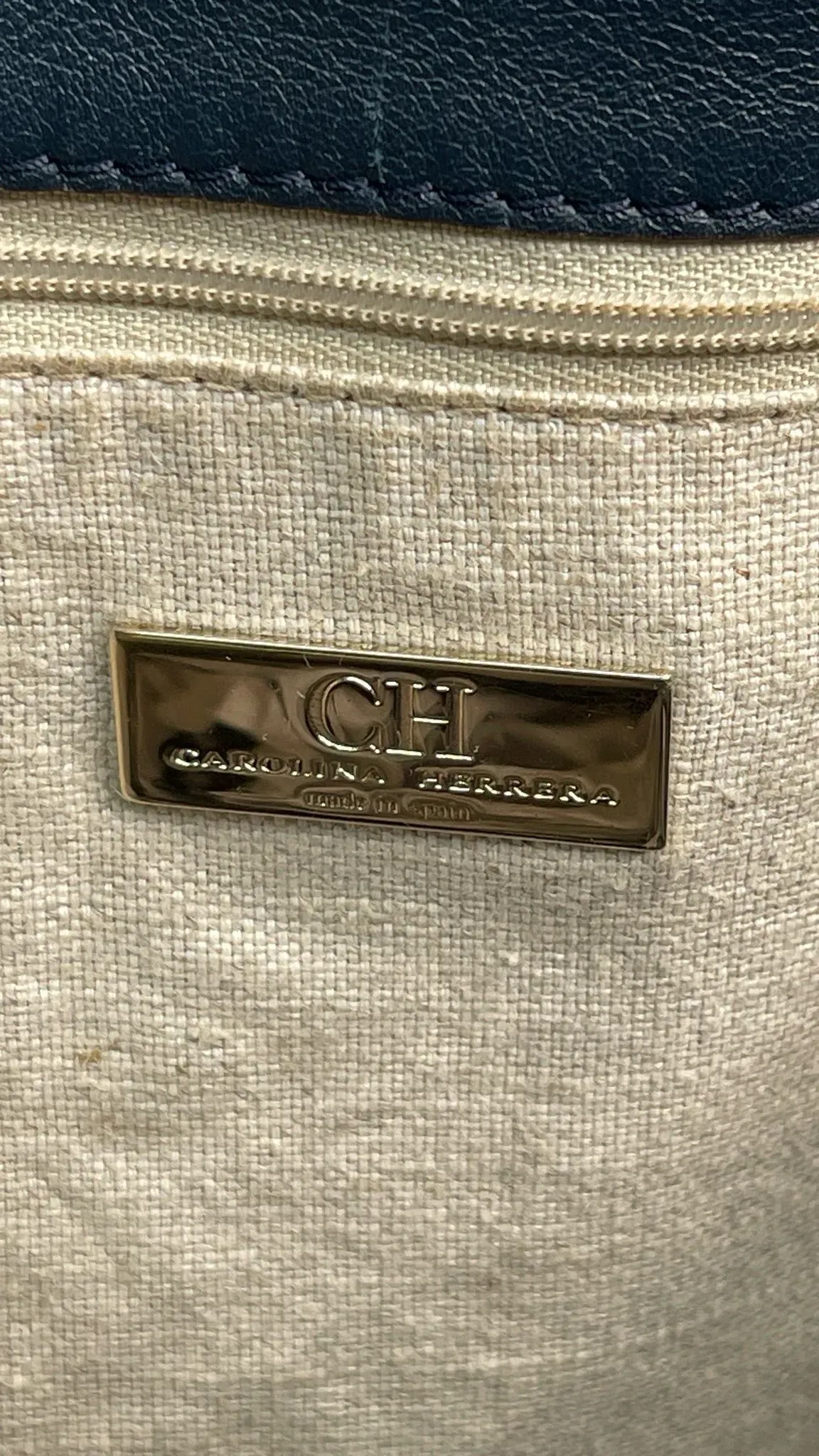 Carolina Herrera Navy Blue Leather Encelope Pocket Tote.
