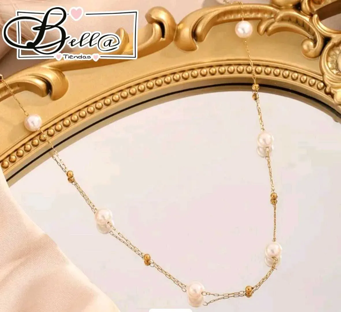 Collar Delicado de Perlas y Mini Balines 🟡⚪️✨️