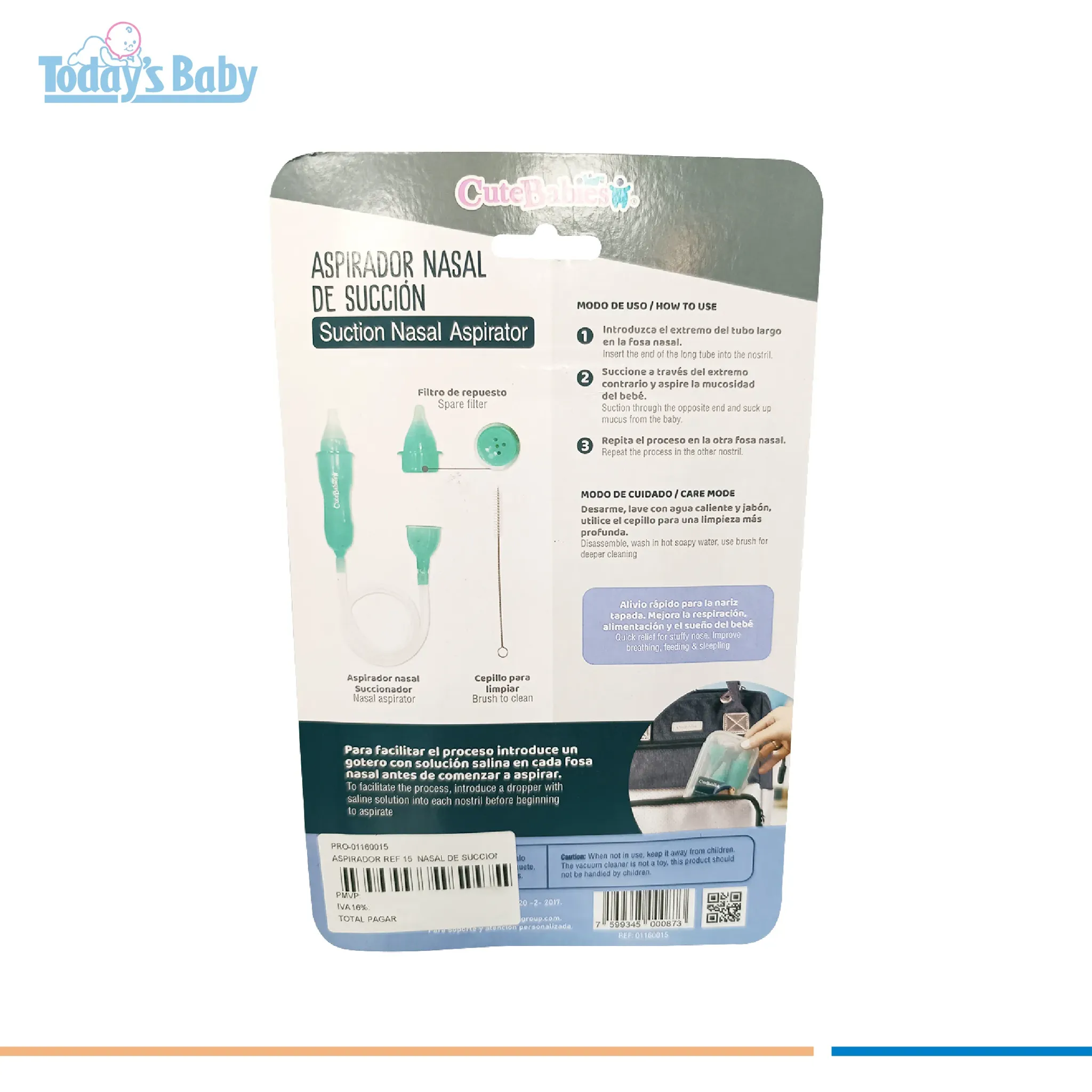 Trae: 1 aspirador nasal, 1 filtro de repuesto, 1 cepillo para limpiar