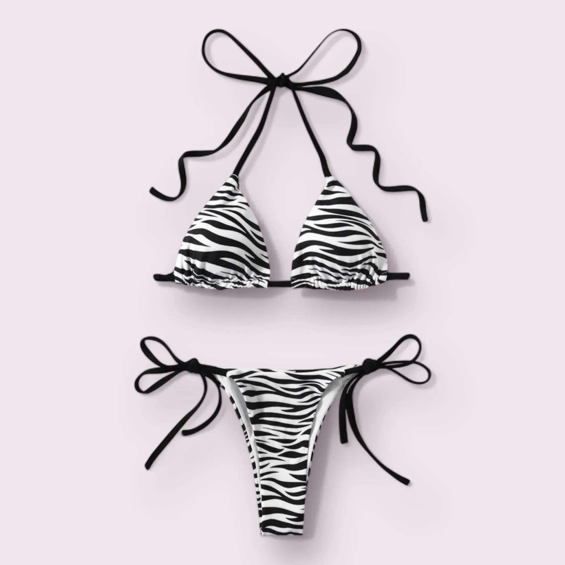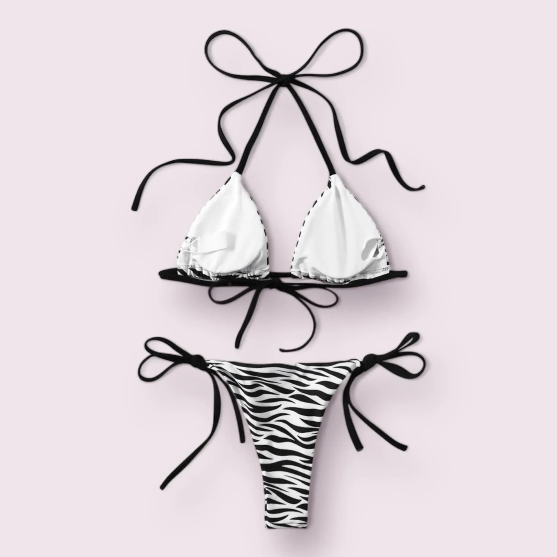 ¡Luce espectacular en la playa con este bikini de diseño cebra en blanco y negro! El estampado le da un toque único y moderno. Confeccionado con materiales de alta calidad para brindarte comodidad y estilo. ¡Hazte con el tuyo y destaca este verano!