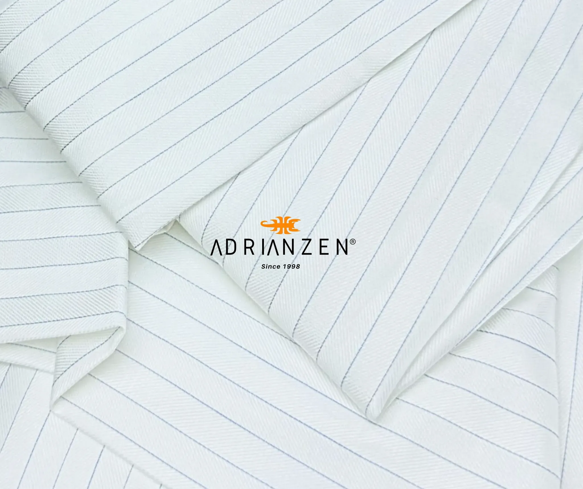 Tejido de algodón liviano; color blanco rayas celeste ; suave y transpirable.