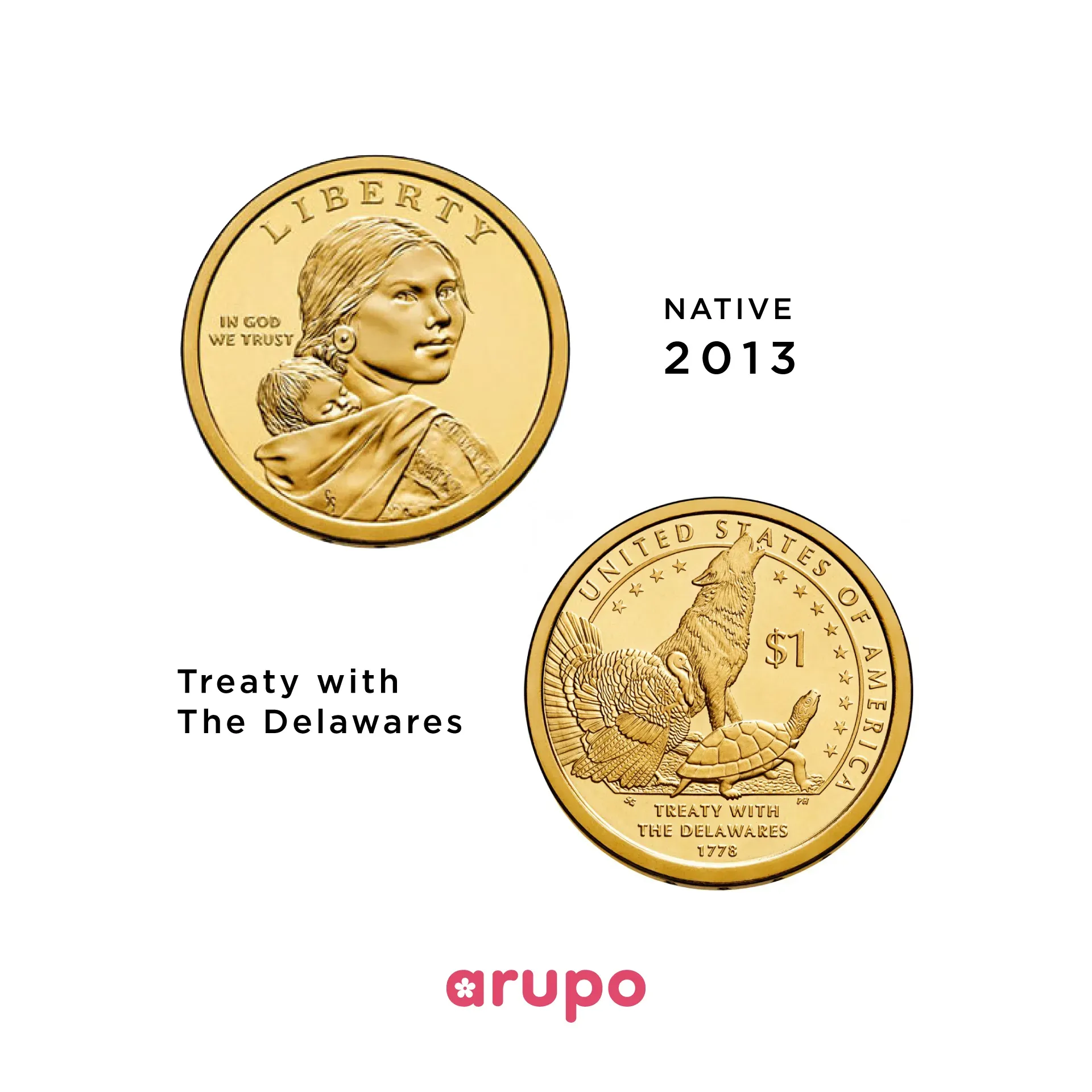 ◾ Anverso: La figura central de Sacagawea y su hijo.