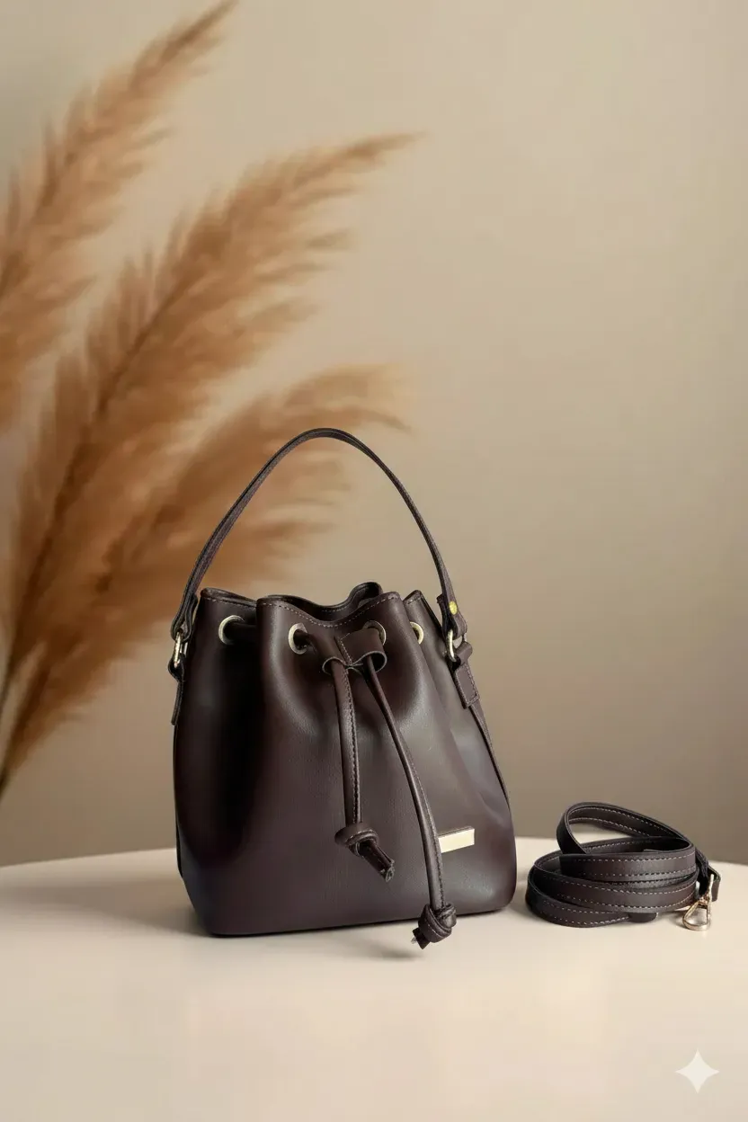 El bolso es de estilo bucket bag (o tipo saco), caracterizado por su diseño estructurado pero flexible y un aire sofisticado.