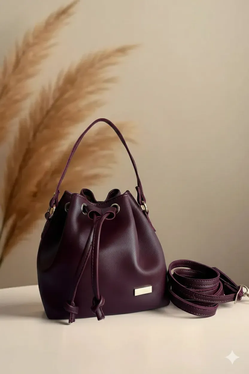 El bolso es de estilo bucket bag (o tipo saco), caracterizado por su diseño estructurado pero flexible y un aire sofisticado.