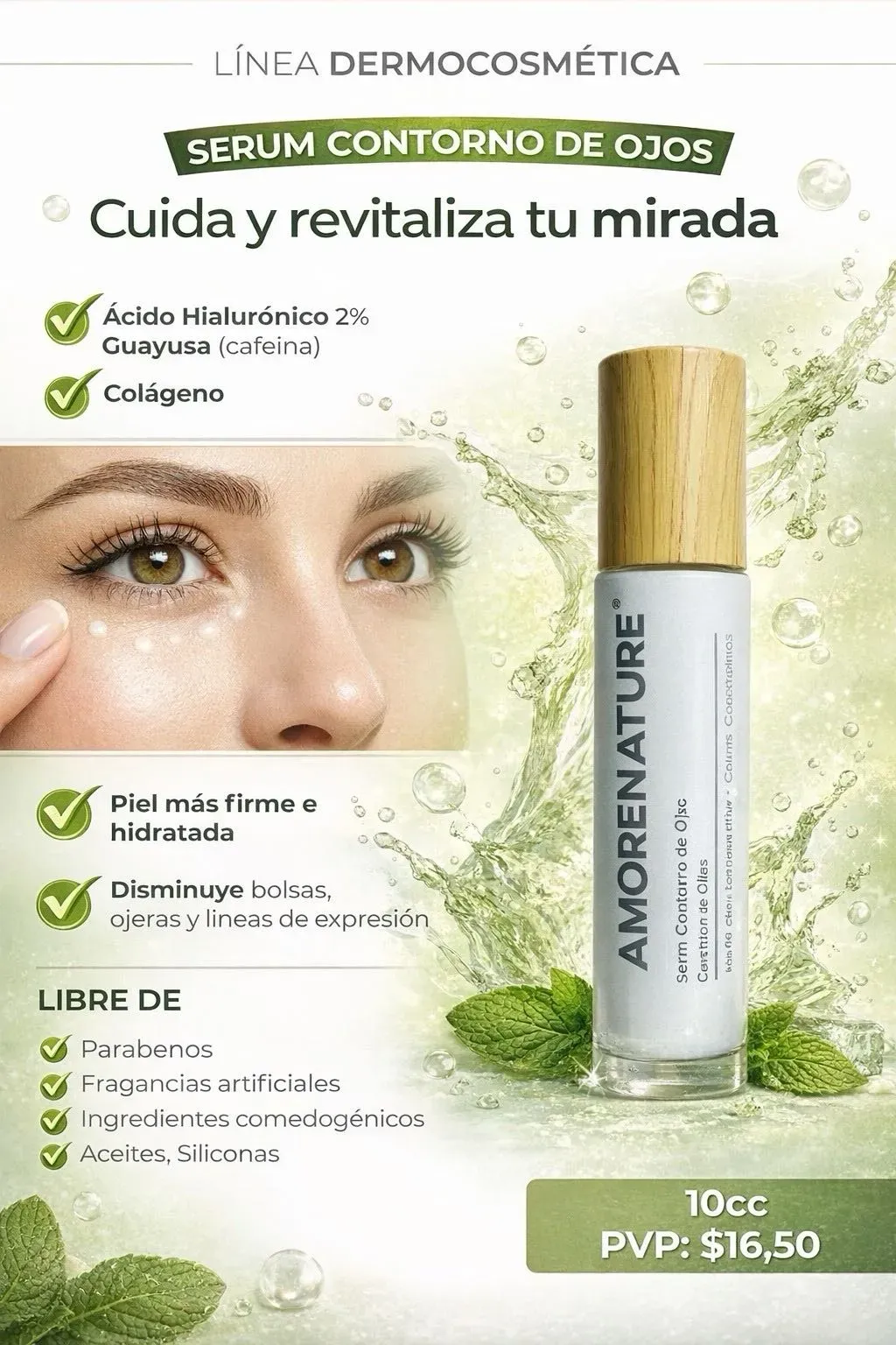 Contorno de ojos con Ácido hialurónico 2%, Guayusa (cafeína) y colágeno.
