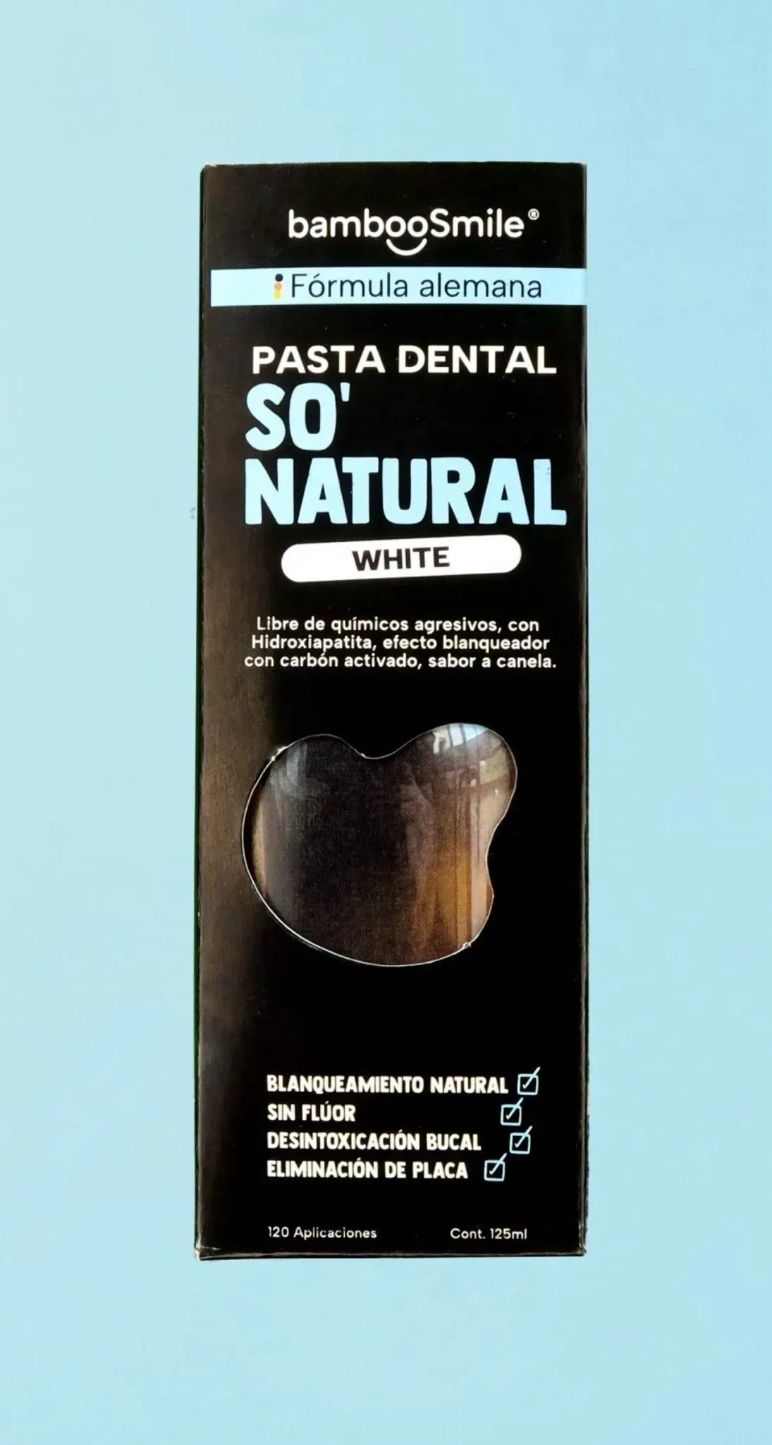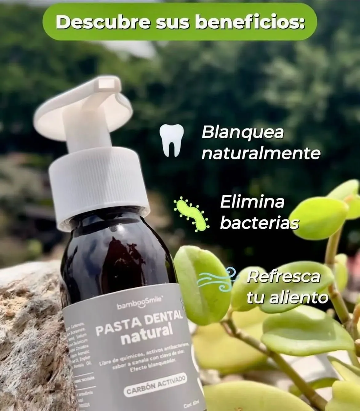 Elaborado con carbón activado que blanquea los dientes de forma natural. 100% natural y con aceites esenciales, contiene xilitol que es un agente natural que combate la caries. Sabor: Clavo de Olor
